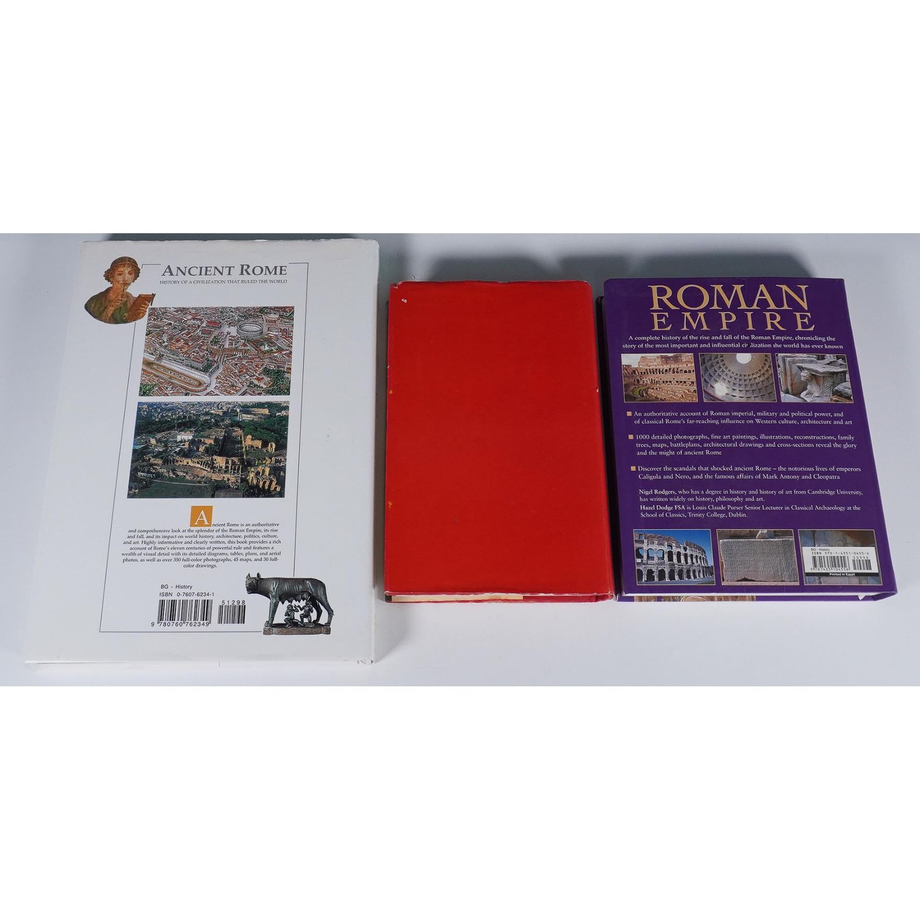 A compelling set exploring the grandeur, culture, and history of Ancient Rome and the Roman Empire. Includes Ancient Rome: History of a Civilization That Ruled the World by Anna Maria Liberati and Fabio Bourbon, featuring rich illustrations and a structured breakdown of Roman society and architecture. Also included is Rome by Anthony Pereira (1974), a compact yet informative guide detailing classical sites and churches, and Roman Empire by Nigel Rodgers, offering a sweeping narrative of the rise and fall of the empire with vibrant photography and scholarly insights. Lot measures 8.5"L x 3.5"W x 12"H.