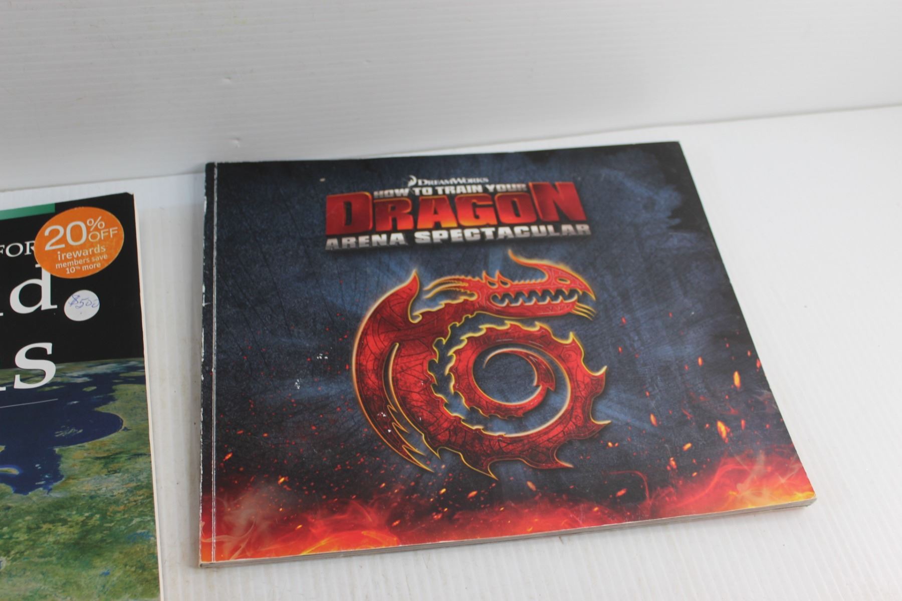 (3) Books - Canadian Oxford World Atlas, World Without End, Amen & Dream Works How To Train Your Dragon and Wall Quote Decor