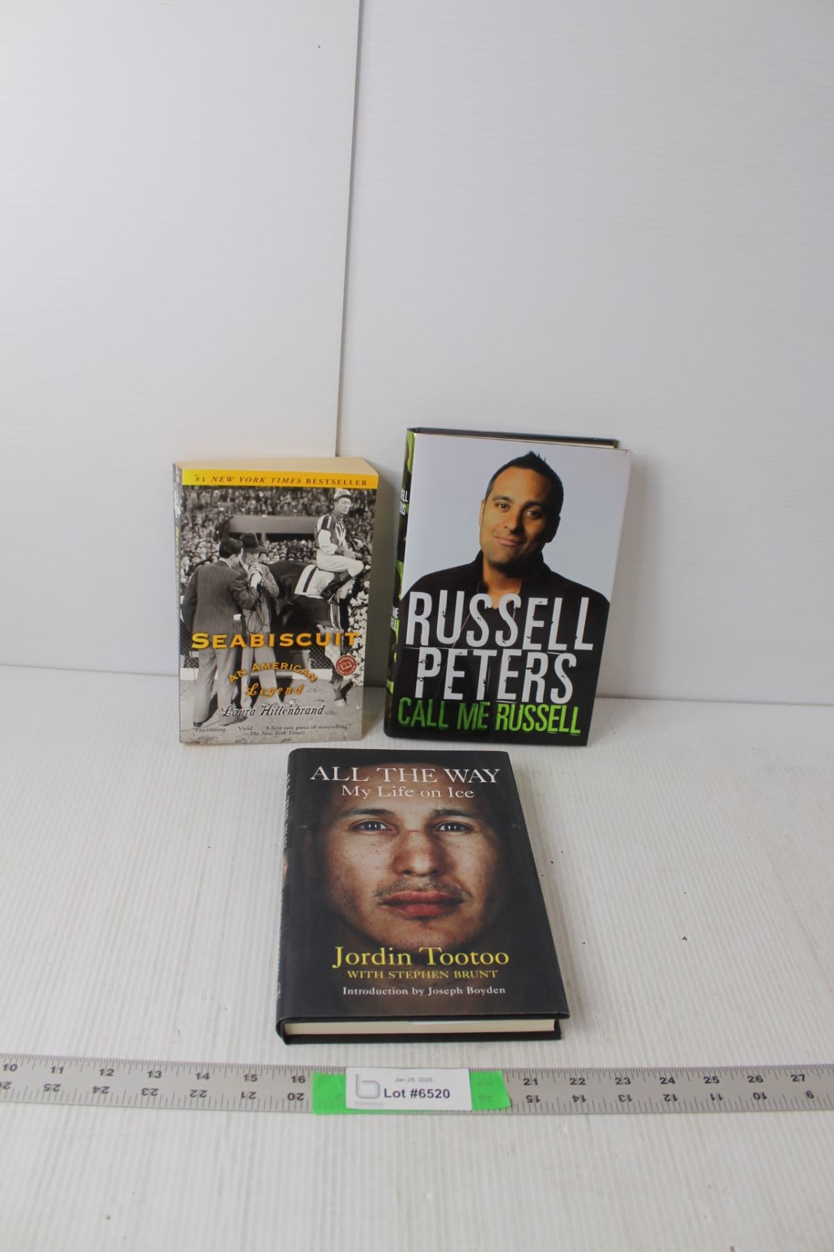 (3) Books- Russell Peters, Jordin Tootoo, Seabiscuit