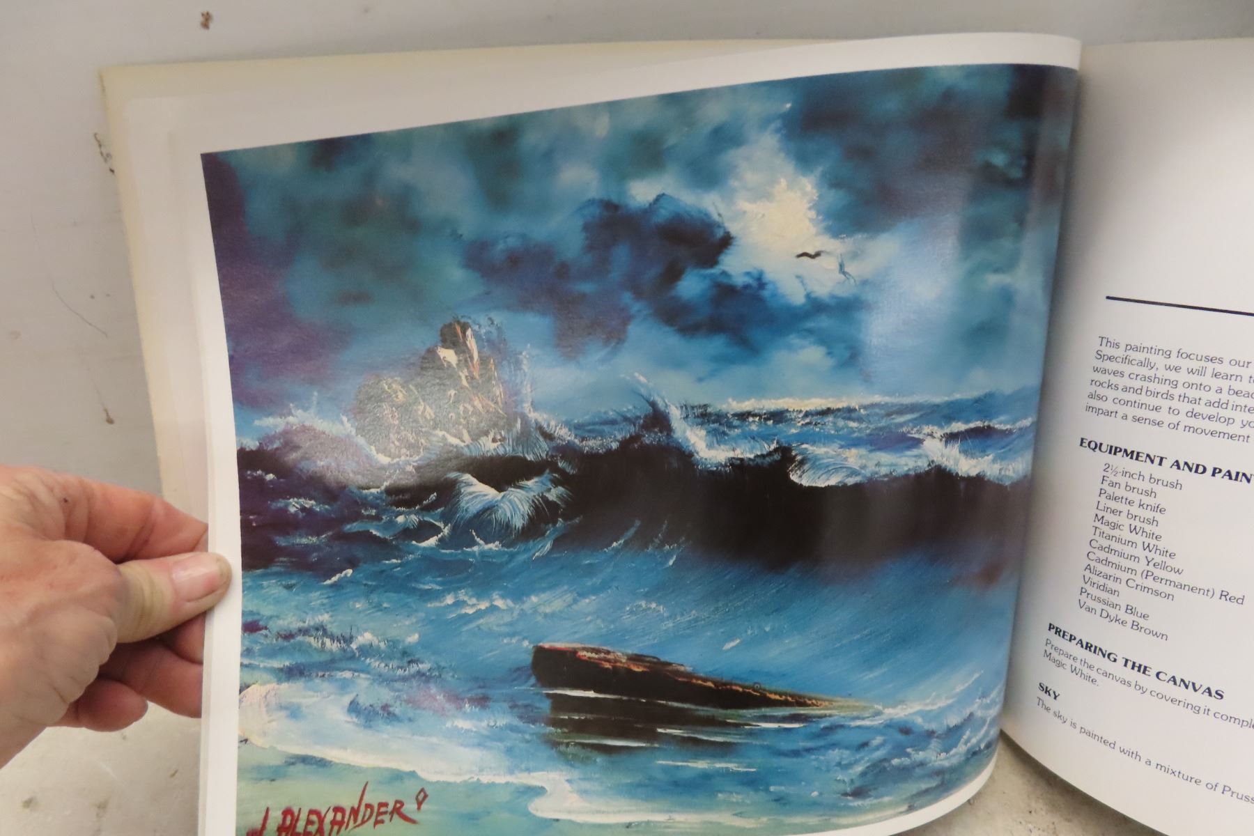 3 Books on The Joy Of Painting With Bob Ross and Books on The Magic of Oil Painting by W.(Bill) Alexander and Friends of Bill Alexander with Instructions