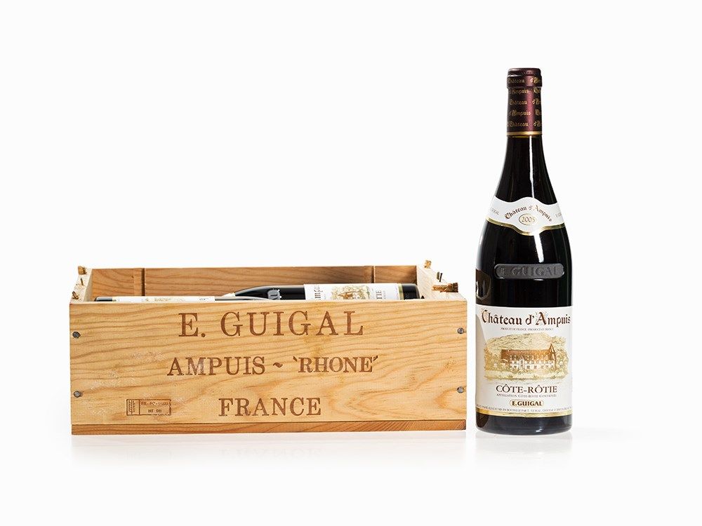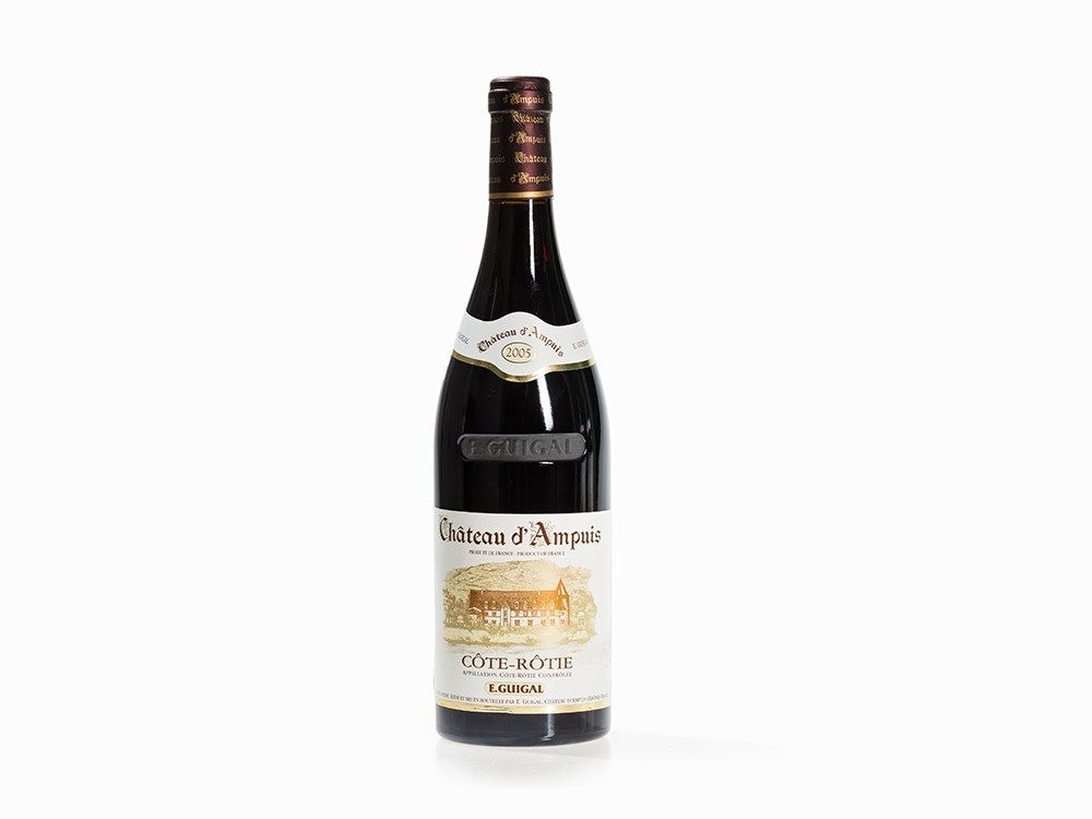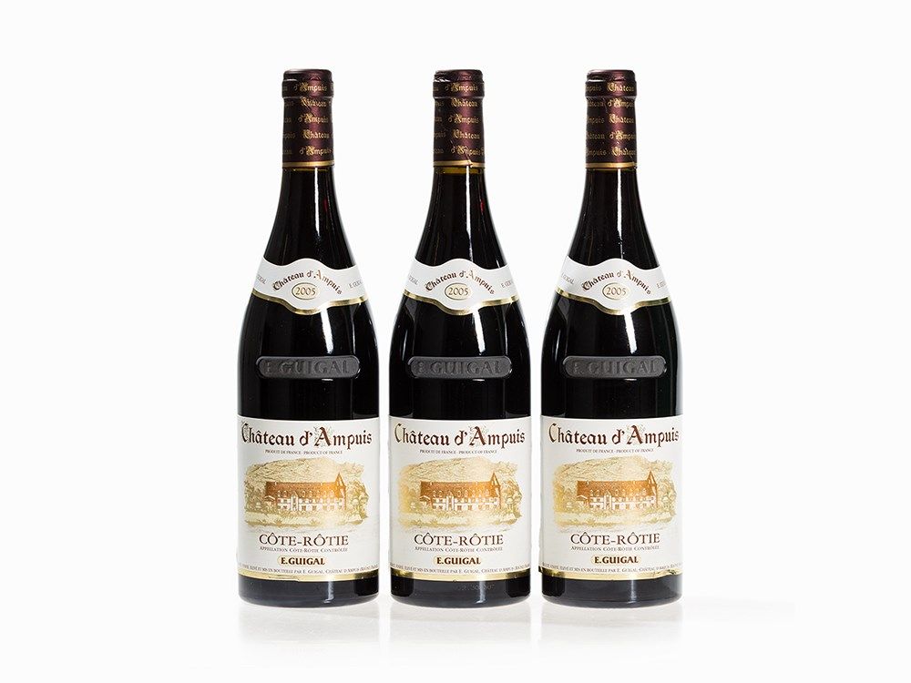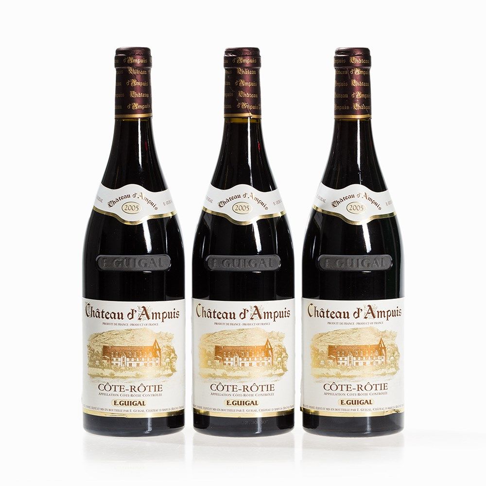 Fill level: This lot comprises three bottles of 2005 vintage Château d’Ampuis produced by E. Guigal from the Côte Rôtie appellation in the French wine region of Rhône.