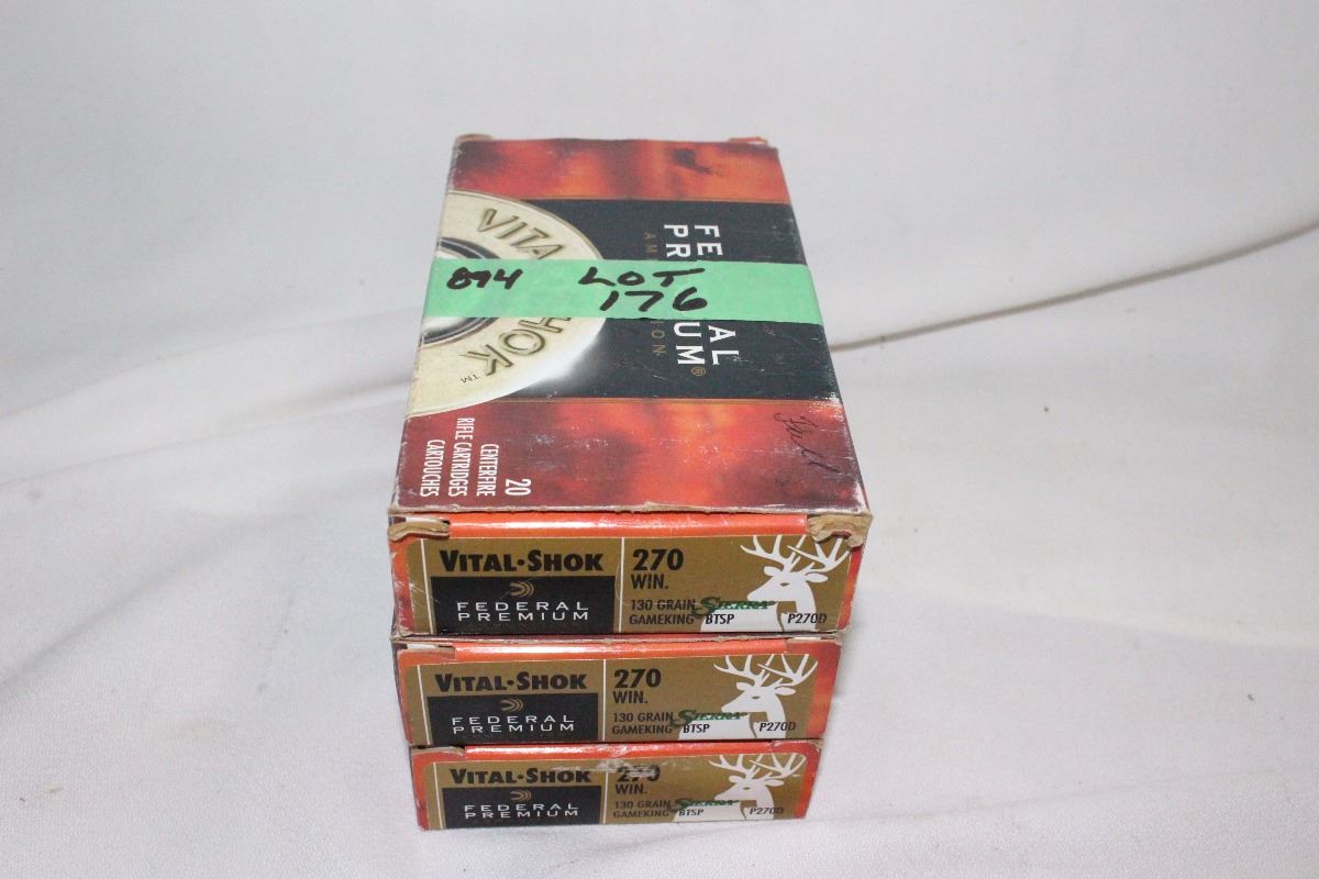 3 Boxes of 60 Rnds. Of 270 Winchester - 130 Grain, Game King BTSP