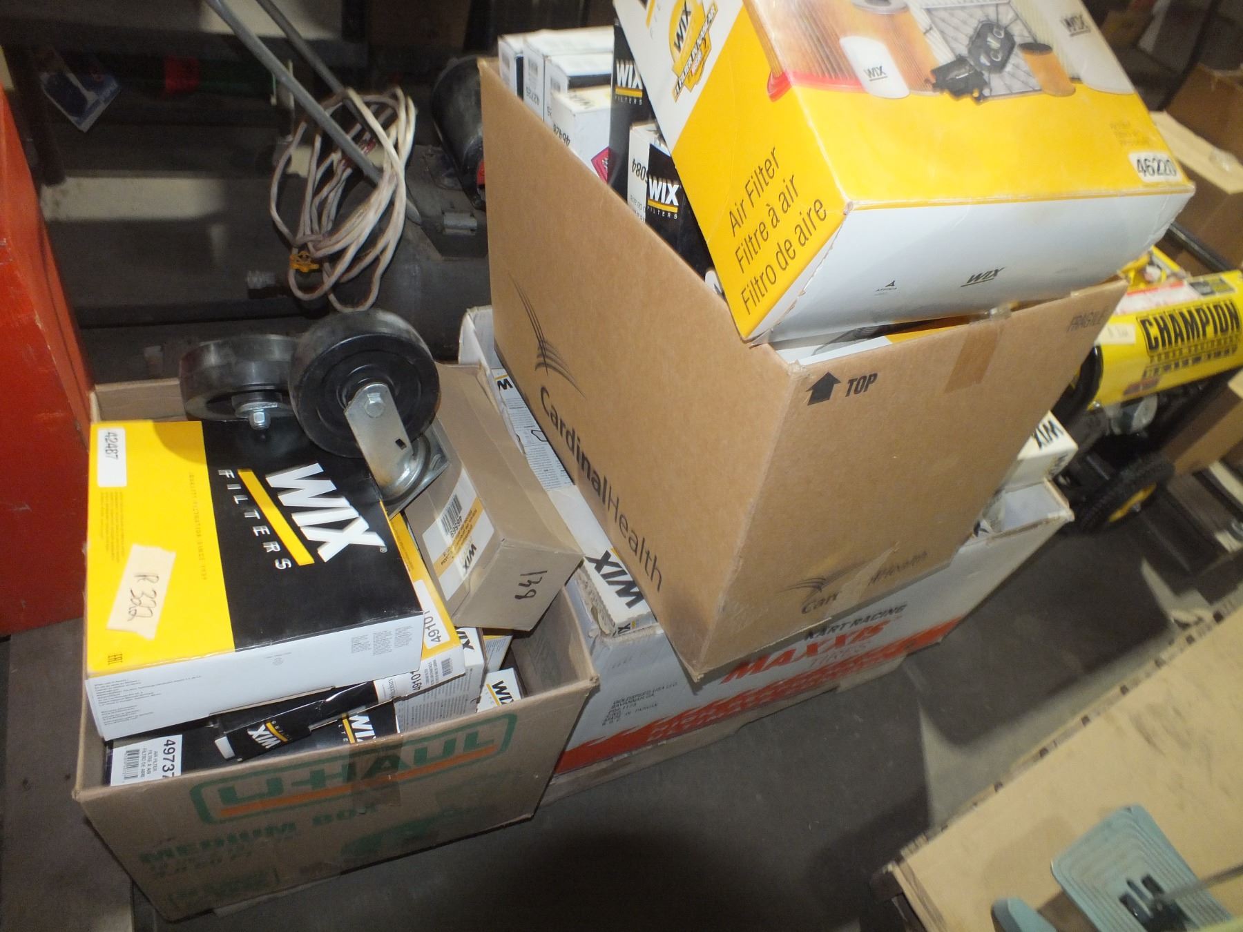 3 Boxes of Assorted Air Filters & 2 Wheels.....like new...sold as is / where is