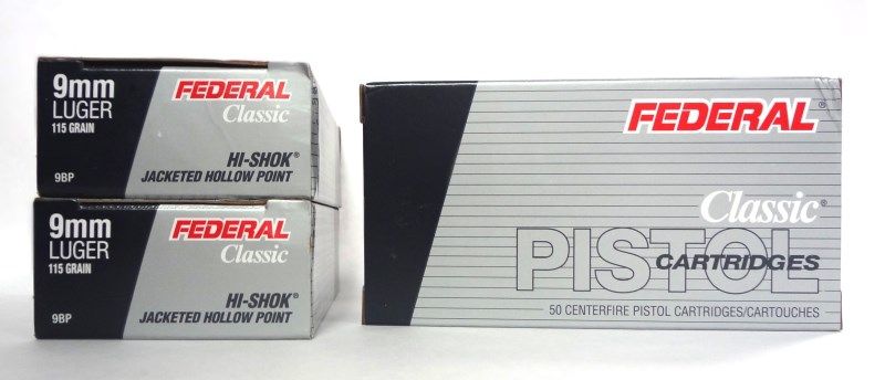 3 Boxes of federal 9mm cartridges. EST$75-$90