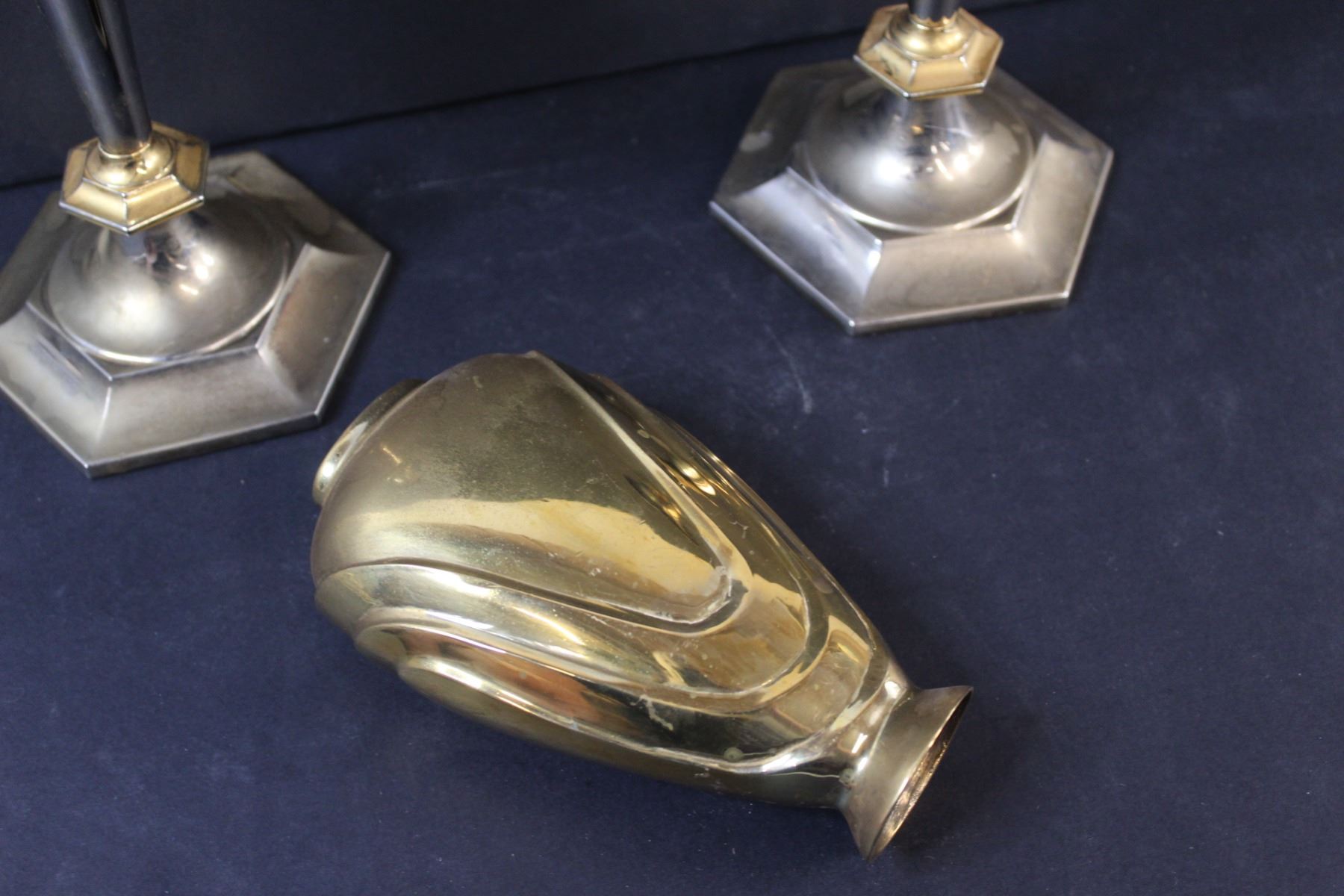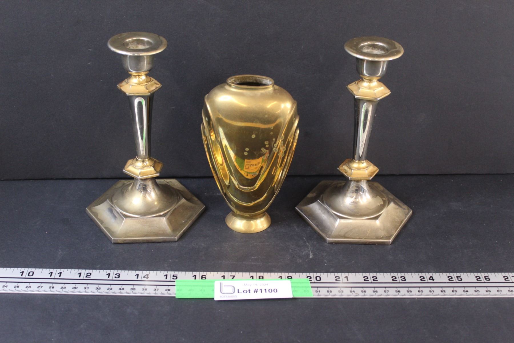 (3) Brass Vase & 2 - Metal Candle Sticks