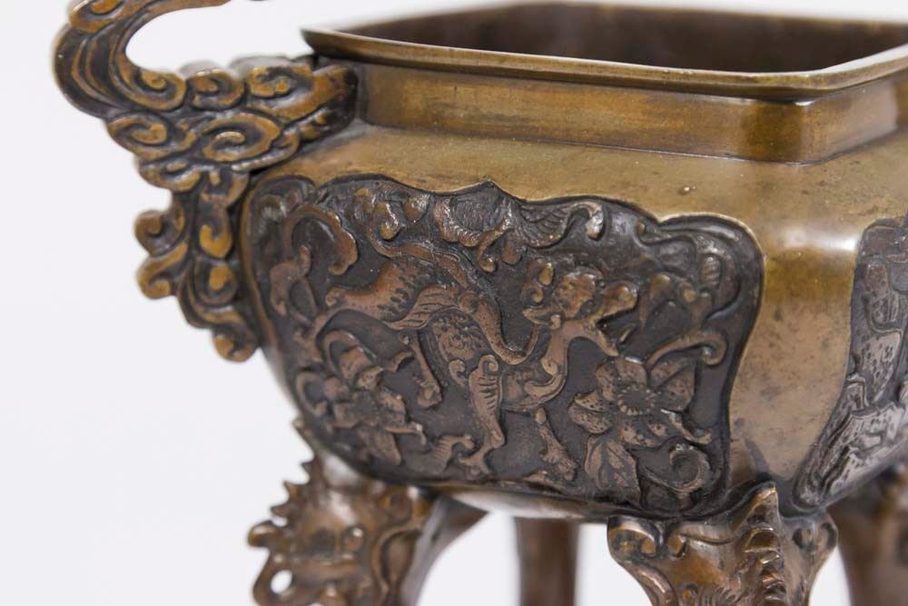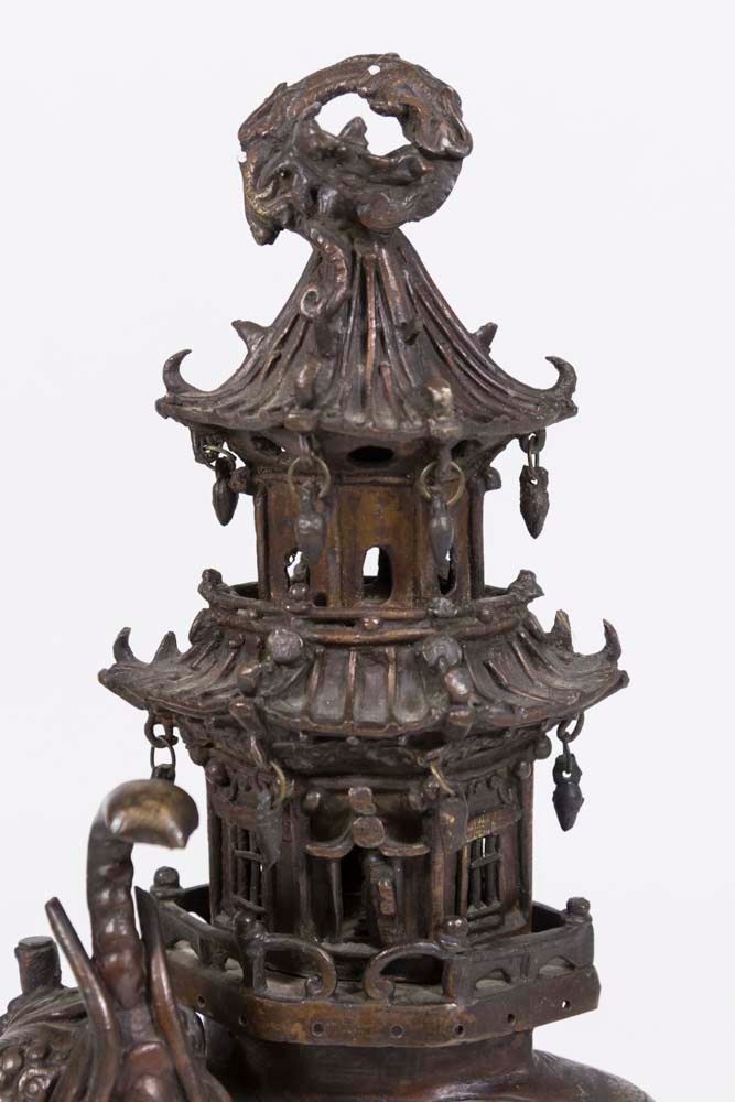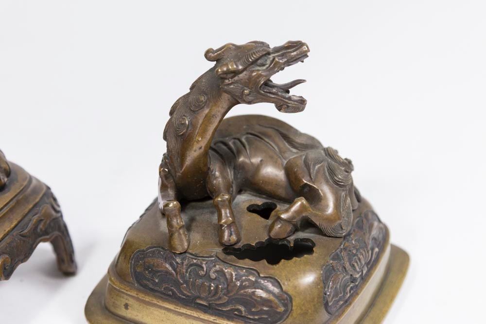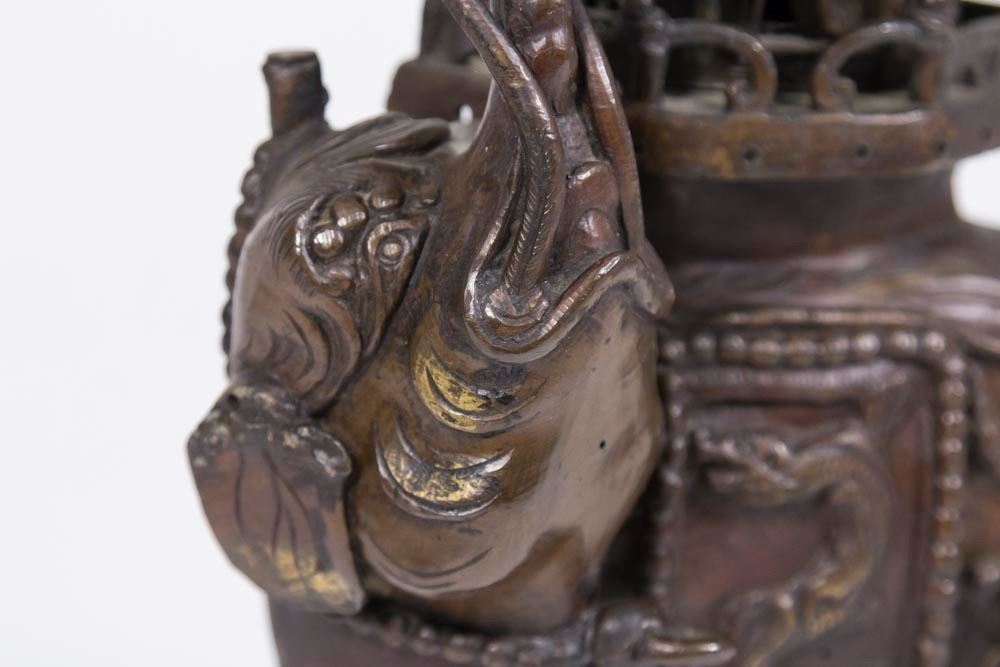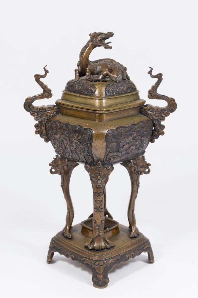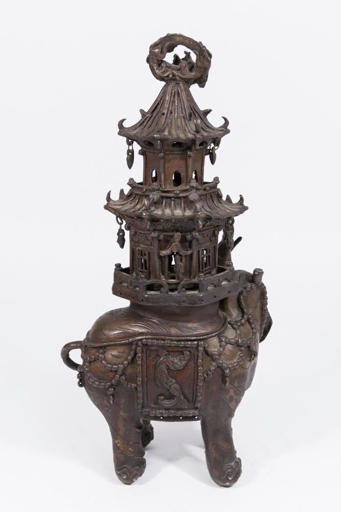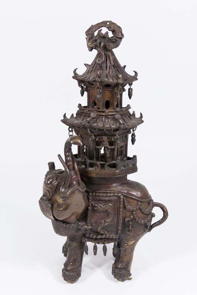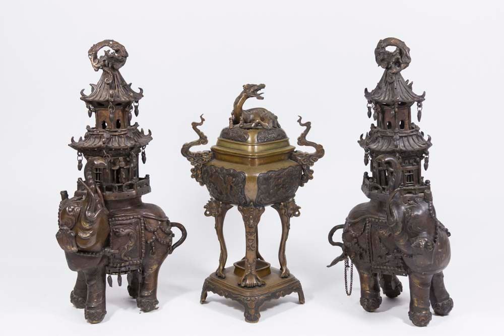 Censer with dragon atop, approx. 13" H; and 2 elephants, approx. 15" H. (6016)