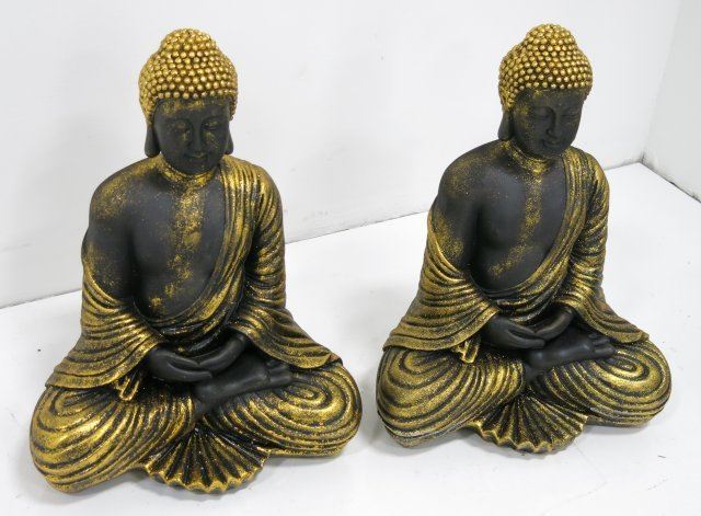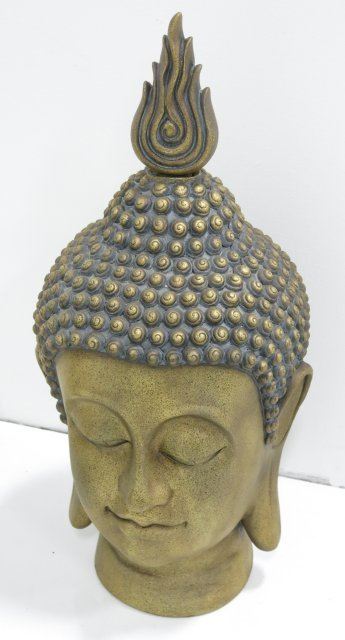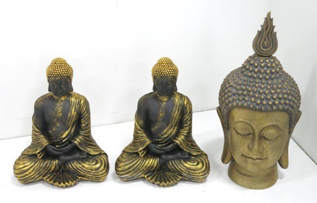 Composition. Head approx. 26" H. Seated approx. 17" H. One seated buddha stained.