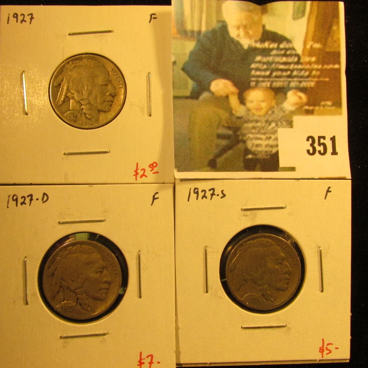 (3) Buffalo Nickels, 1927PDS, all F, group value $14+