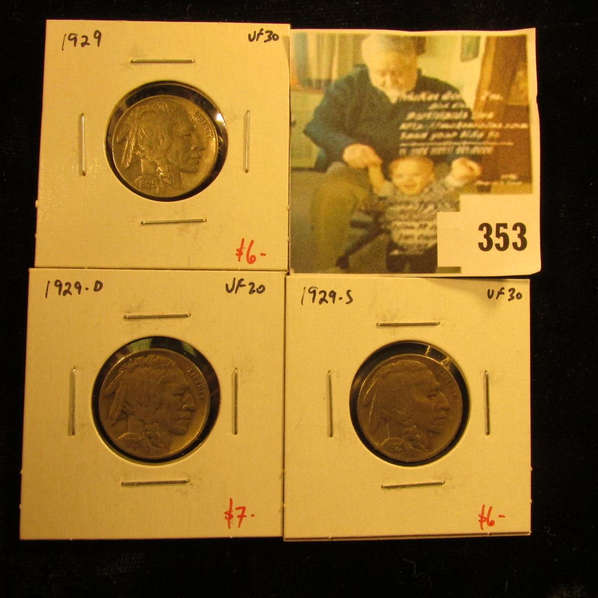 (3) Buffalo Nickels, 1929PDS, all VF, value $19