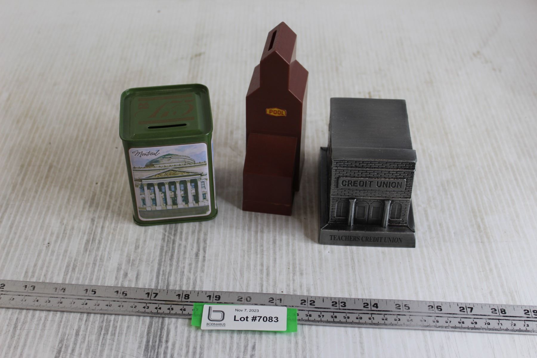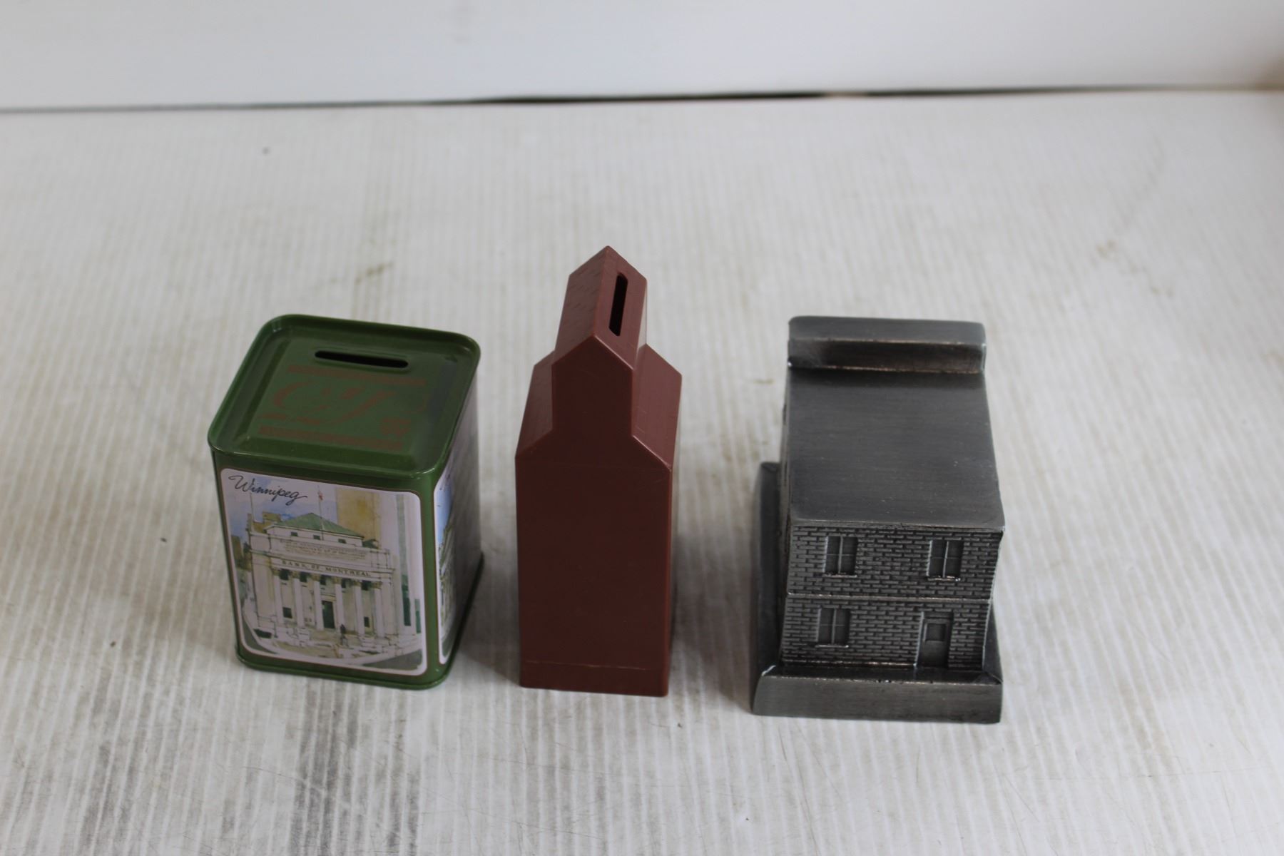 (3) Building-Style Coin Banks - Teacher's Credit Union, Pool Elevator, Montreal