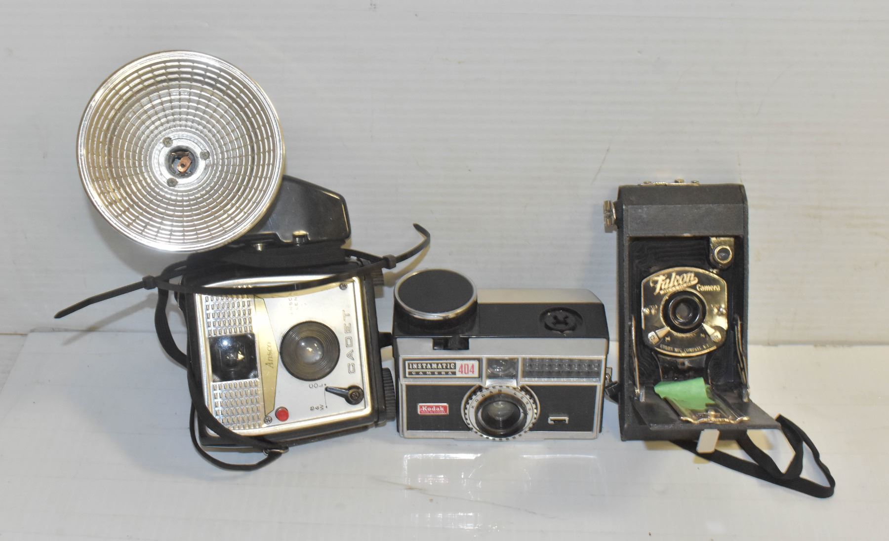 3 CAMERAS - AN SO CADET , KODAK INSTAMATIC, FALCON