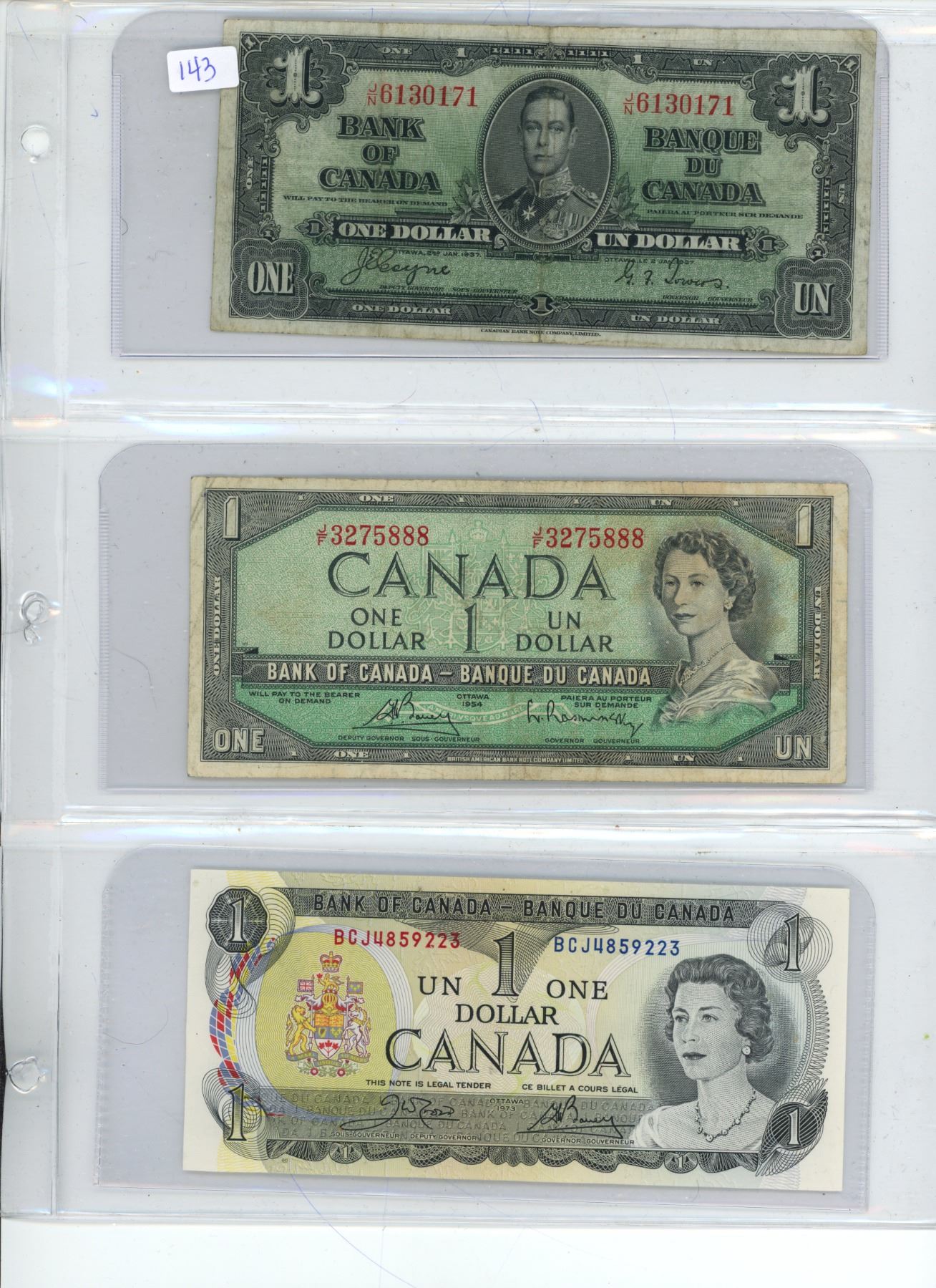 3 CANADIAN 1$ BILLS 1937/1954/1973
