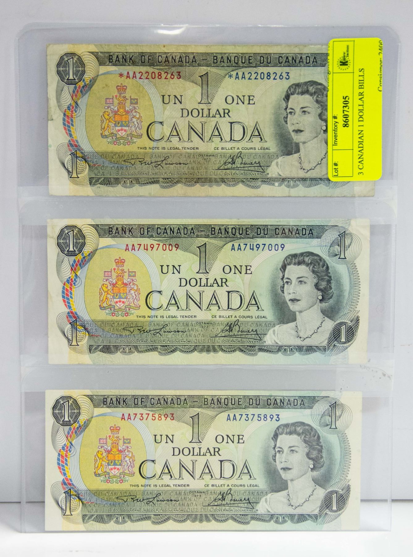 3 CANADIAN 1 DOLLAR BILLS 1973