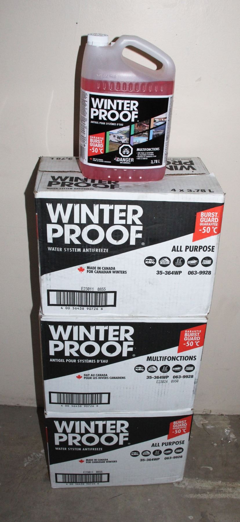 3 CASES OF WINTER PROOF WATER SYSTEM ANTIFREEZE