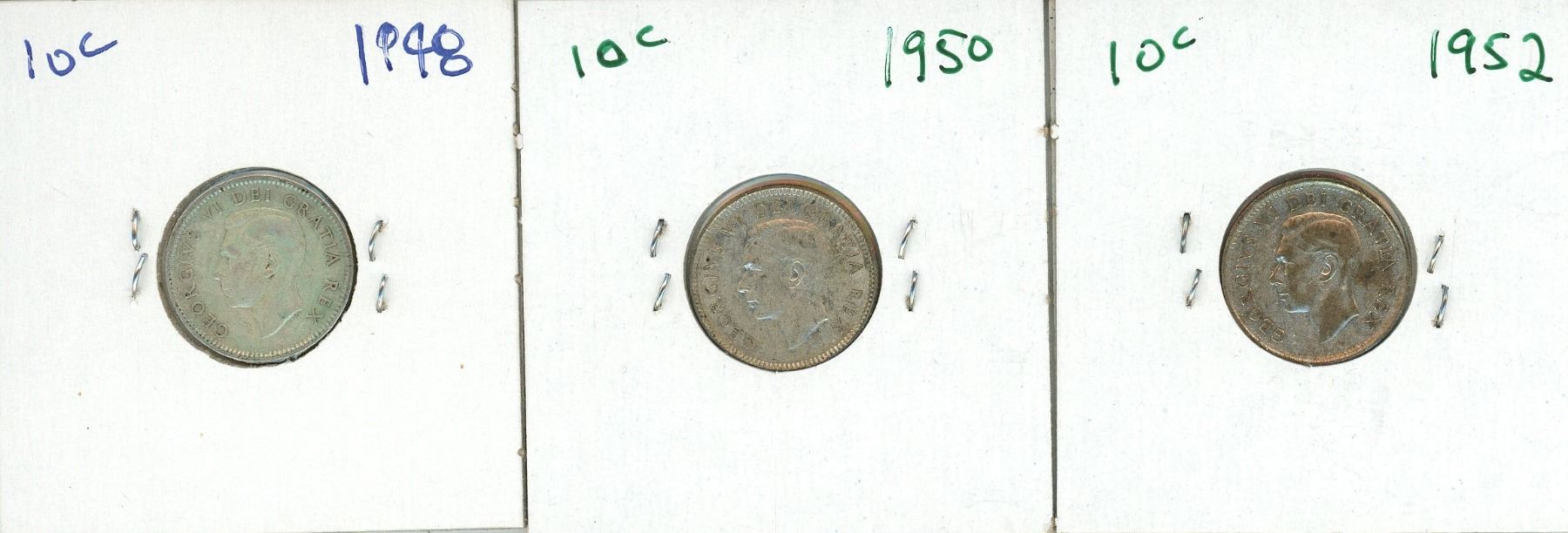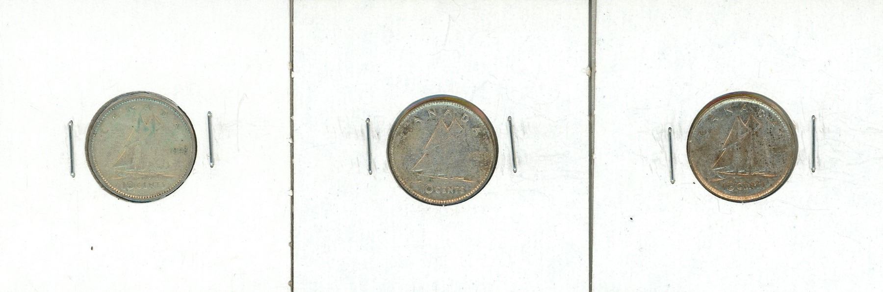 3 – CDN SILVER DIMES 1948,50,52 VG-VF