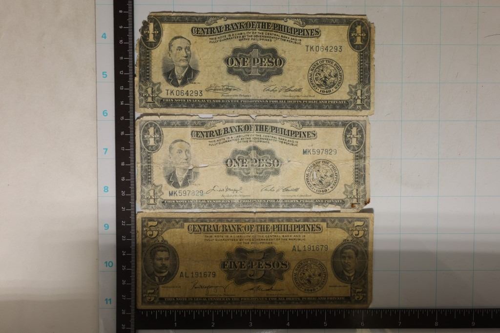 PESO AND 1-FIVE PESO. BILLS ARE IN TOUGHER SHAPE