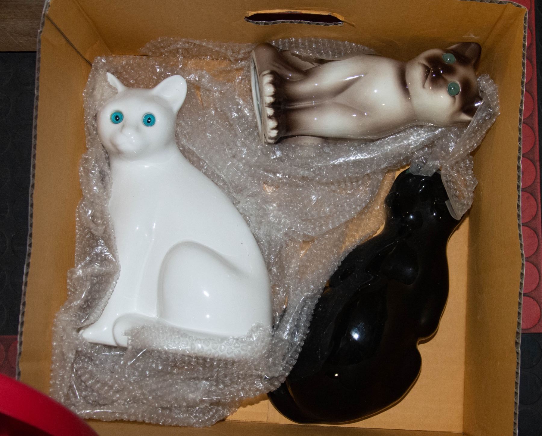 3 CERAMIC CAT FIGURES, ELPA ALCOBACA STAMPED MADE