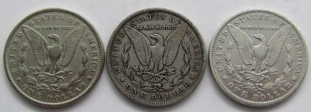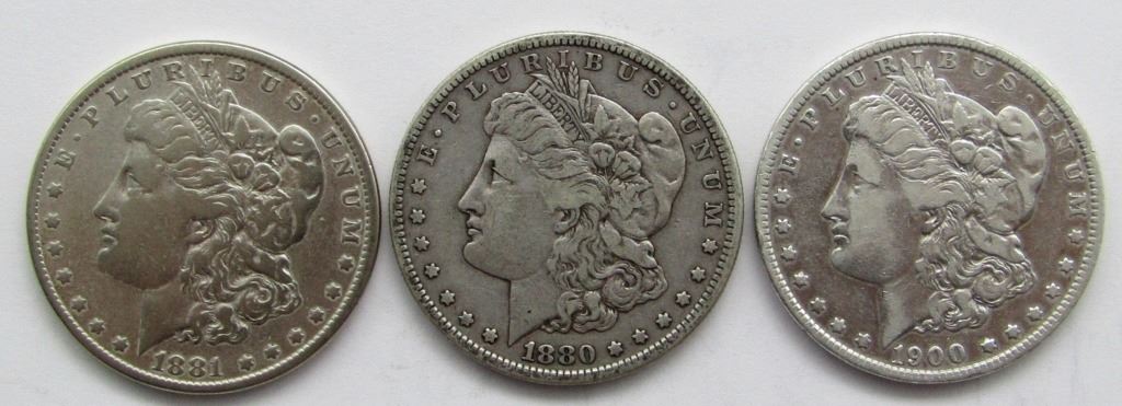3-CIRC MORGAN DOLLARS: 1881, 1900-O, 1880-S