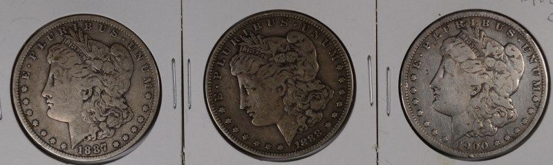 3 CIRCULATED MORGAN DOLLARS 1900-O, 1888-O, 1887-O