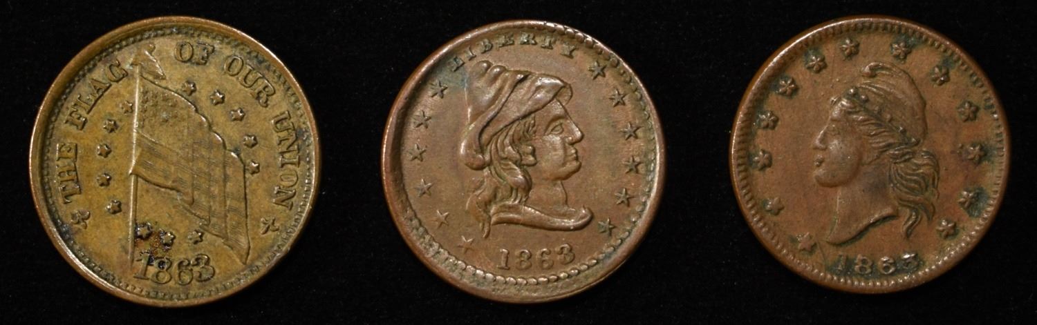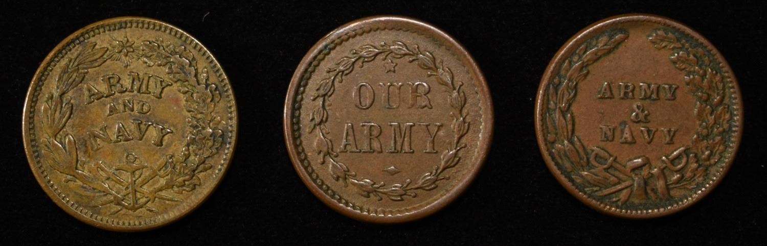 3 CIVIL WAR TOKENS- (2) ARMY/NAVY, ARMY