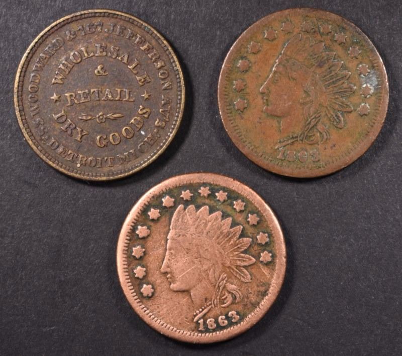 3-CIVIL WAR TOKENS FROM DETROIT MI ESTIMATE $150 - $160.