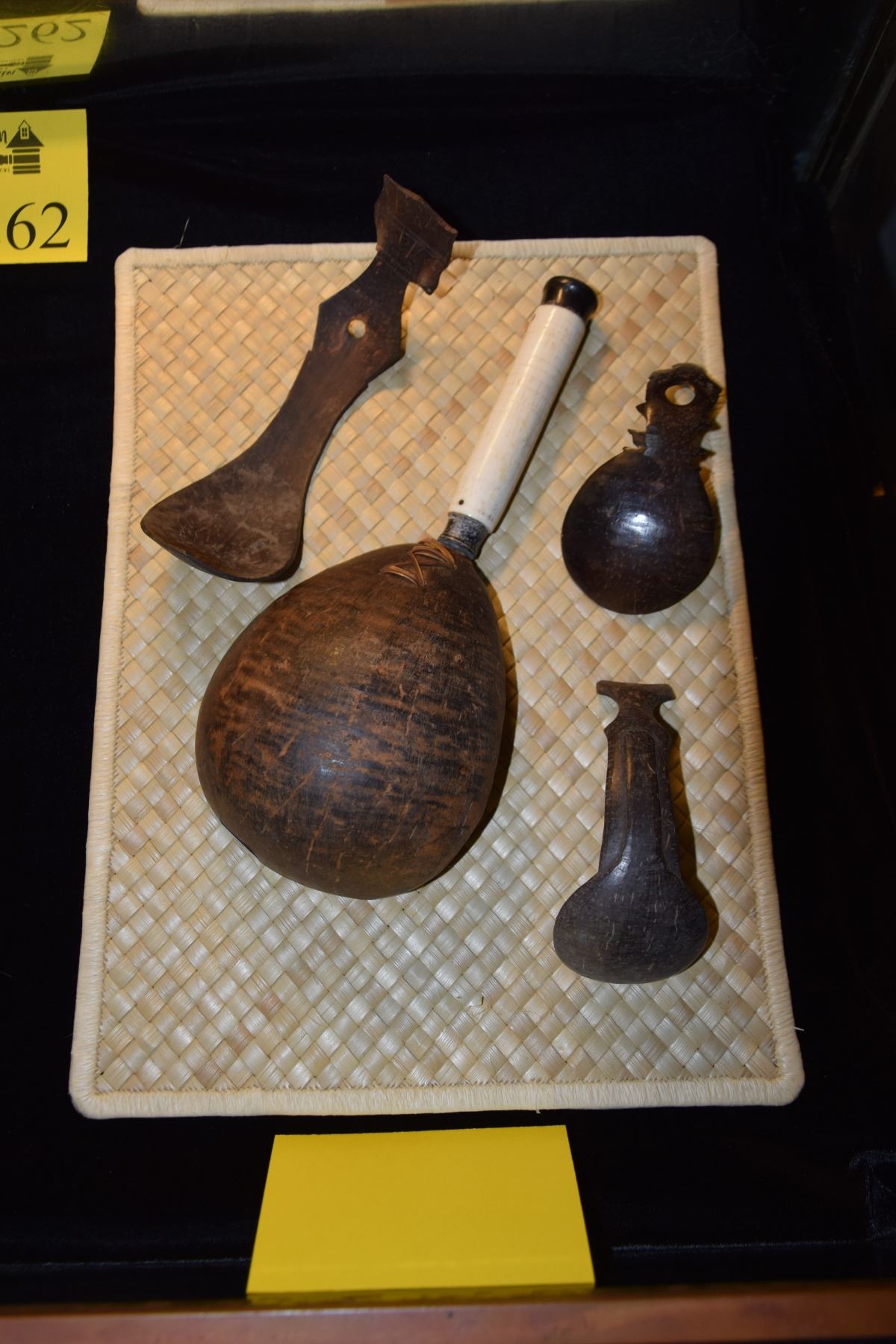 3 COCONUT SPOONS & 1 COCONUT LADLE (BROKEN HANDLE) - PACIFIC ISLANDS