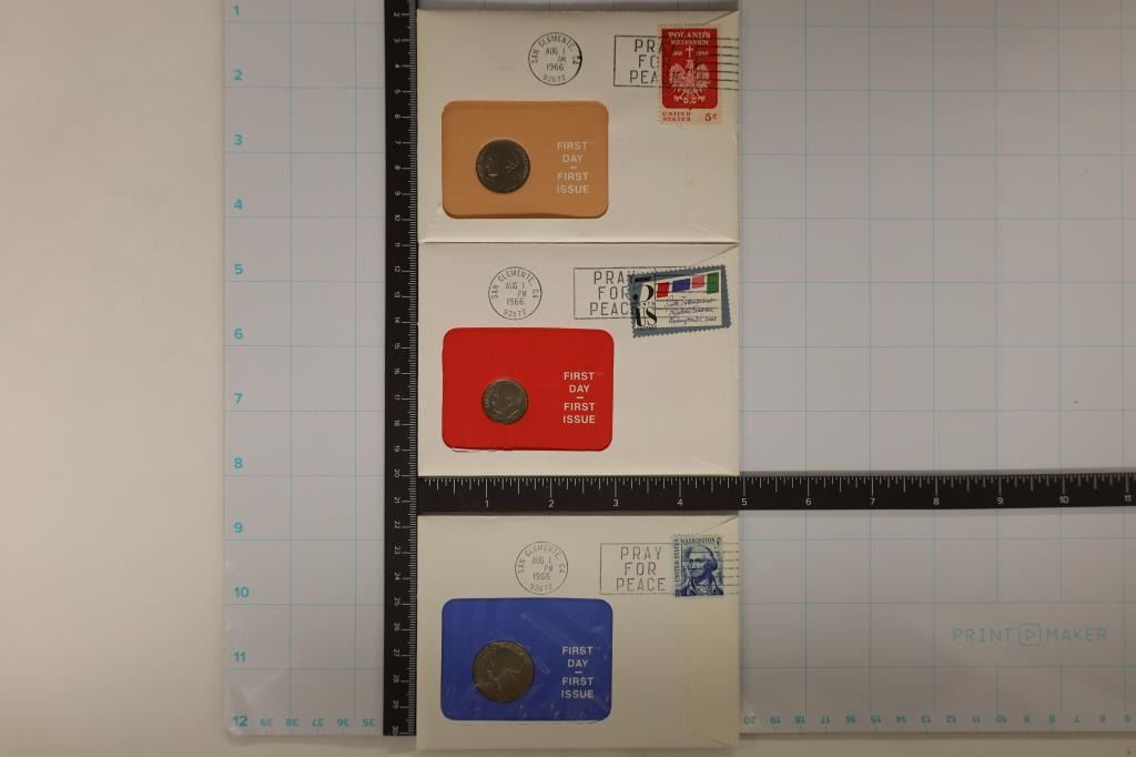 1966 JEFFERSON NICKEL, 1966 ROOSEVELT DIME AND 1966 WASHINGTON QUARTER.