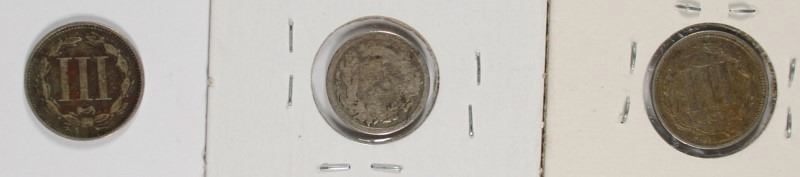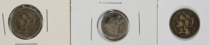 3 - COIN LOT; 1860 SEATED HALF DIME, 1868 & 1867 THREE CENT NICKEL - G / VG's