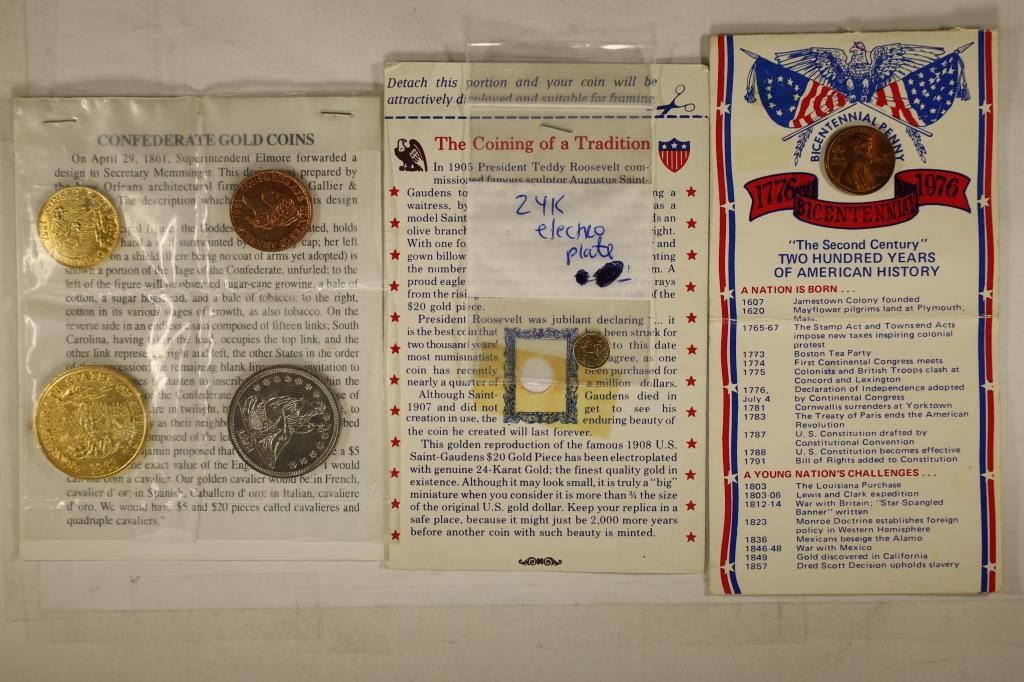 2) 1976 BICENTENNIAL PENNY AND 3) 24KT ELECTROPLATE MINIATURE REPLICA US $20