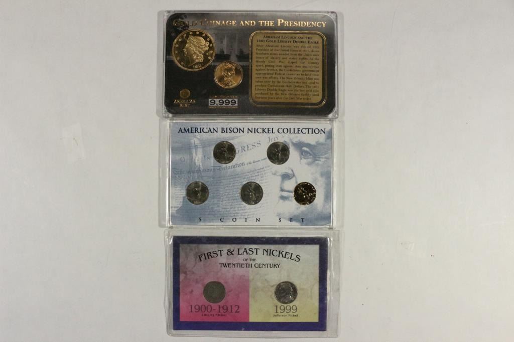 1ST AND LAST NICKELS OF THE 20TH CENTURY (LIBERTY "V" NICKEL AND JEFFERSON NICKEL), AMERICAN BISON NICKEL COLLECTION AND GOLD COINAGE AND THE PRESIDENCY (LINCOLN DOLLAR AND REPLICA 1861 $20 GOLD)