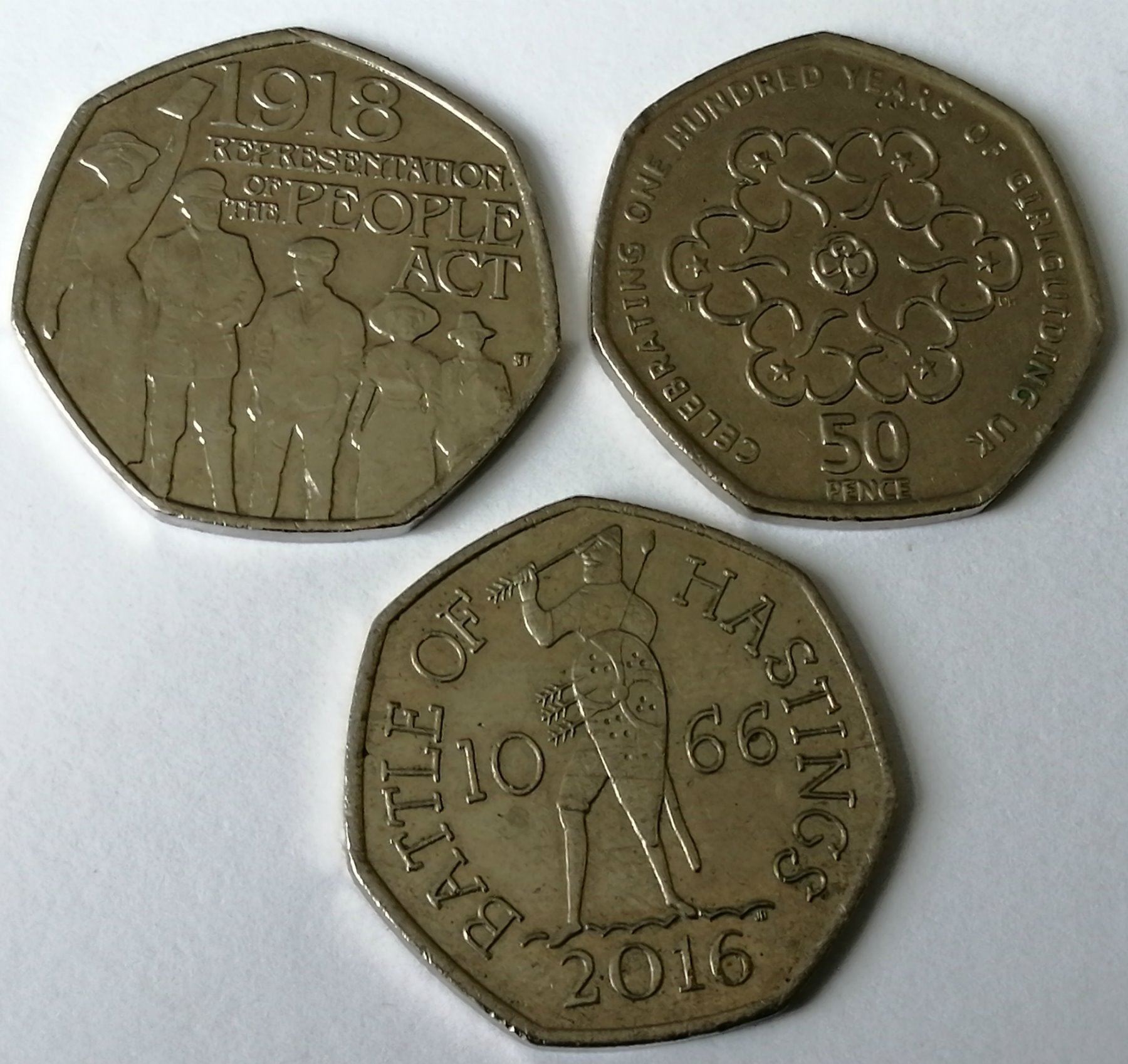 The 2010 release 50p coin celebrating one hundred years of Girlguiding UK