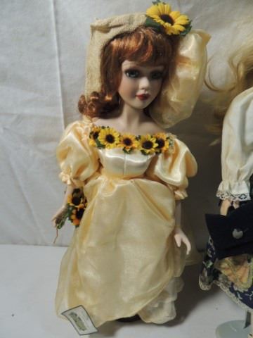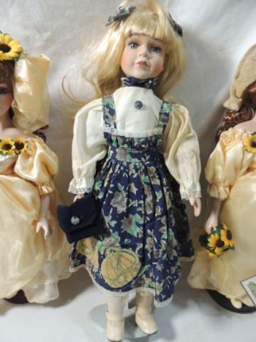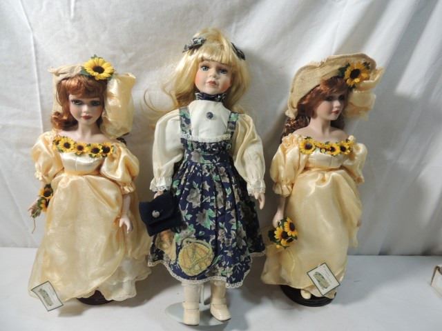 3 COLLECTIBLE EDITIONS PORCELAIN DOLLS ON STANDS