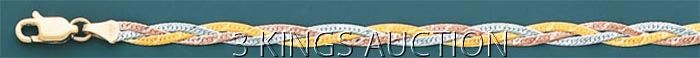 3 COLOR BRAIDED 7in. 2.2 grs 14kt 3tone Gold **|**|** 3 COLOR BRAIDED 7in. 2.2 grs 14kt 3tone Gold ; MSRP: $200