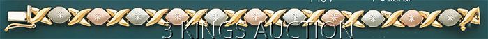3 COLOR STAMPATO BRACELET 71/4in. 10.8 grs 14kt 3tone G **|**|** 3 COLOR STAMPATO BRACELET 71/4in. 10.8 grs 14kt 3tone Gold ; MSRP: $900