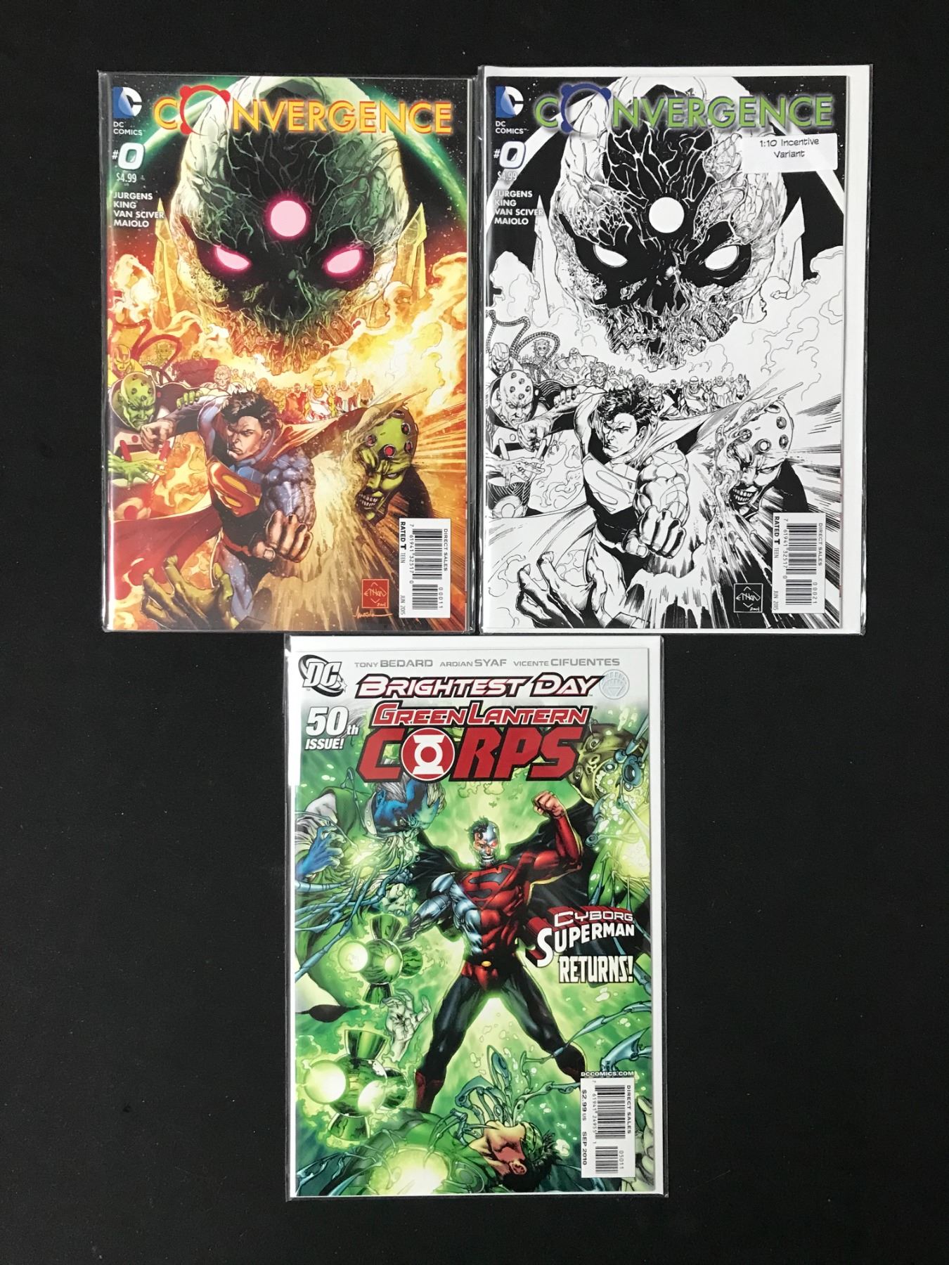 3 COMICS:CONVERGENCE #0 AND #0 + 1:10 INCENTIVE VARIANT AND BRIGHTEST DAY GREEN LANTERN CORPS