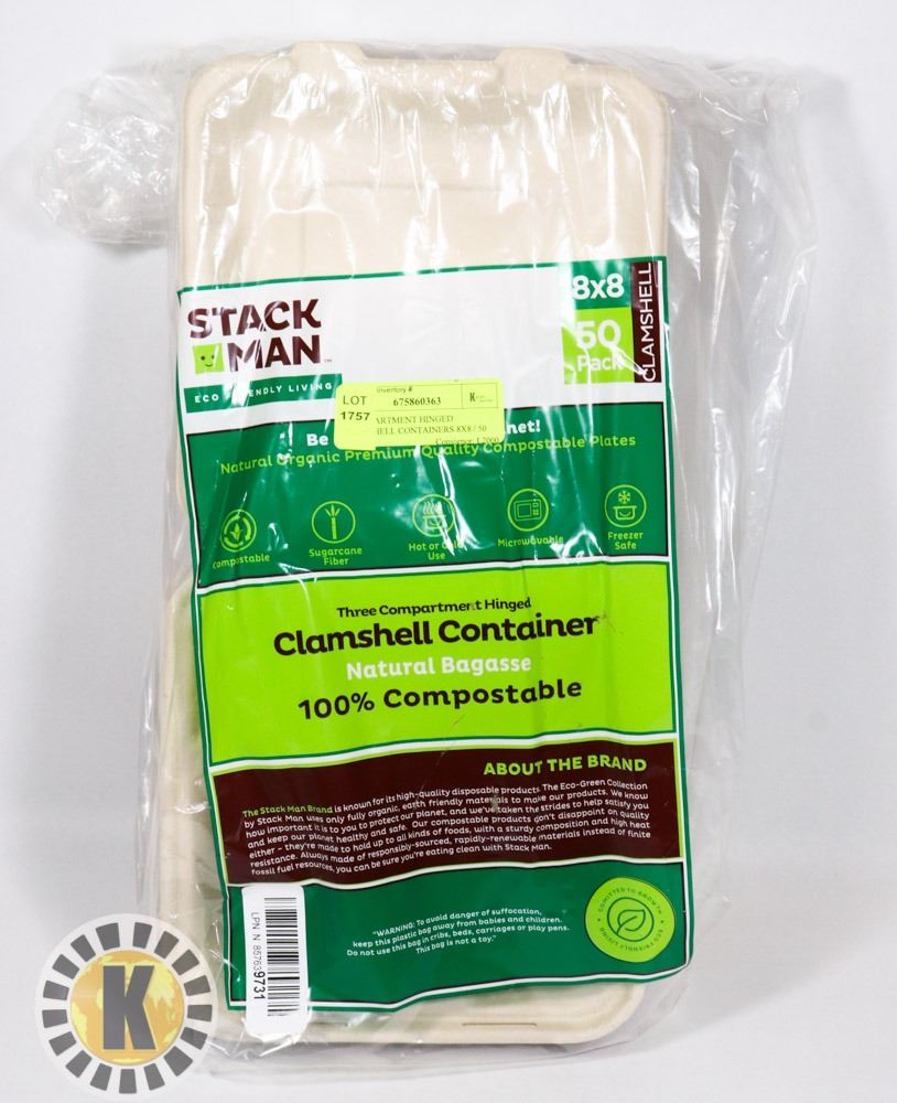 3 COMPARTMENT HINGED CLAMSHELL CONTAINERS 8X8 / 50