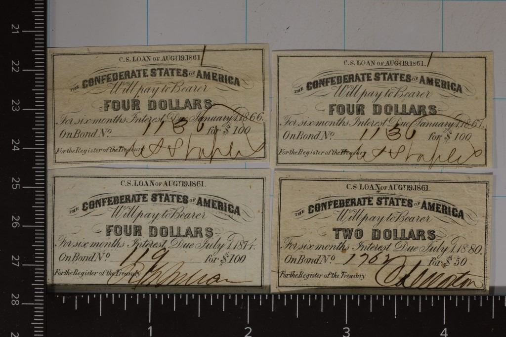 1867, 1874 AND 1880. THREE OF THEM ARE FOR $4 AND ONE IS FOR $2