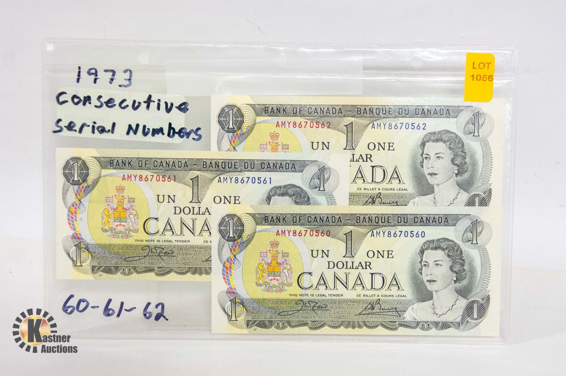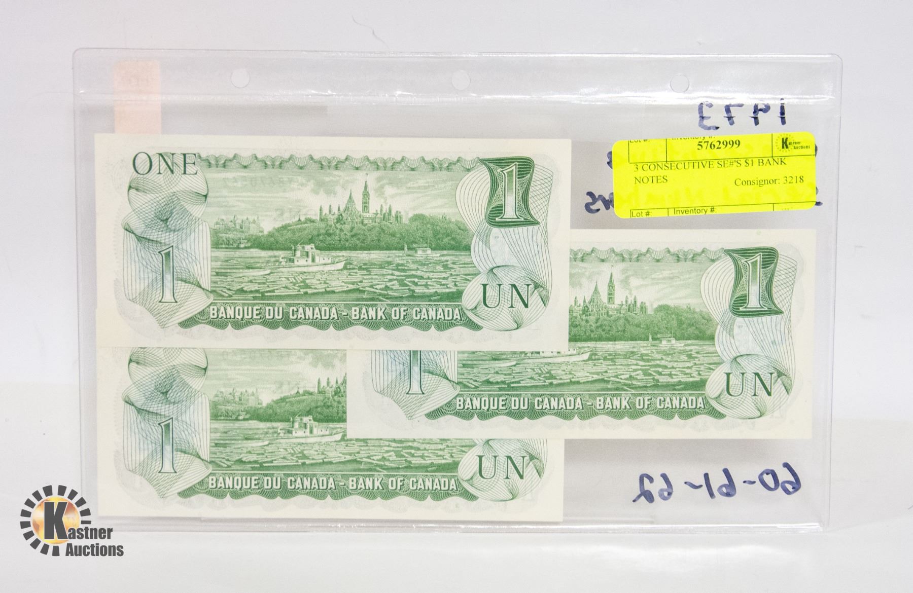 3 CONSECUTIVE SE#'S $1 BANK NOTES