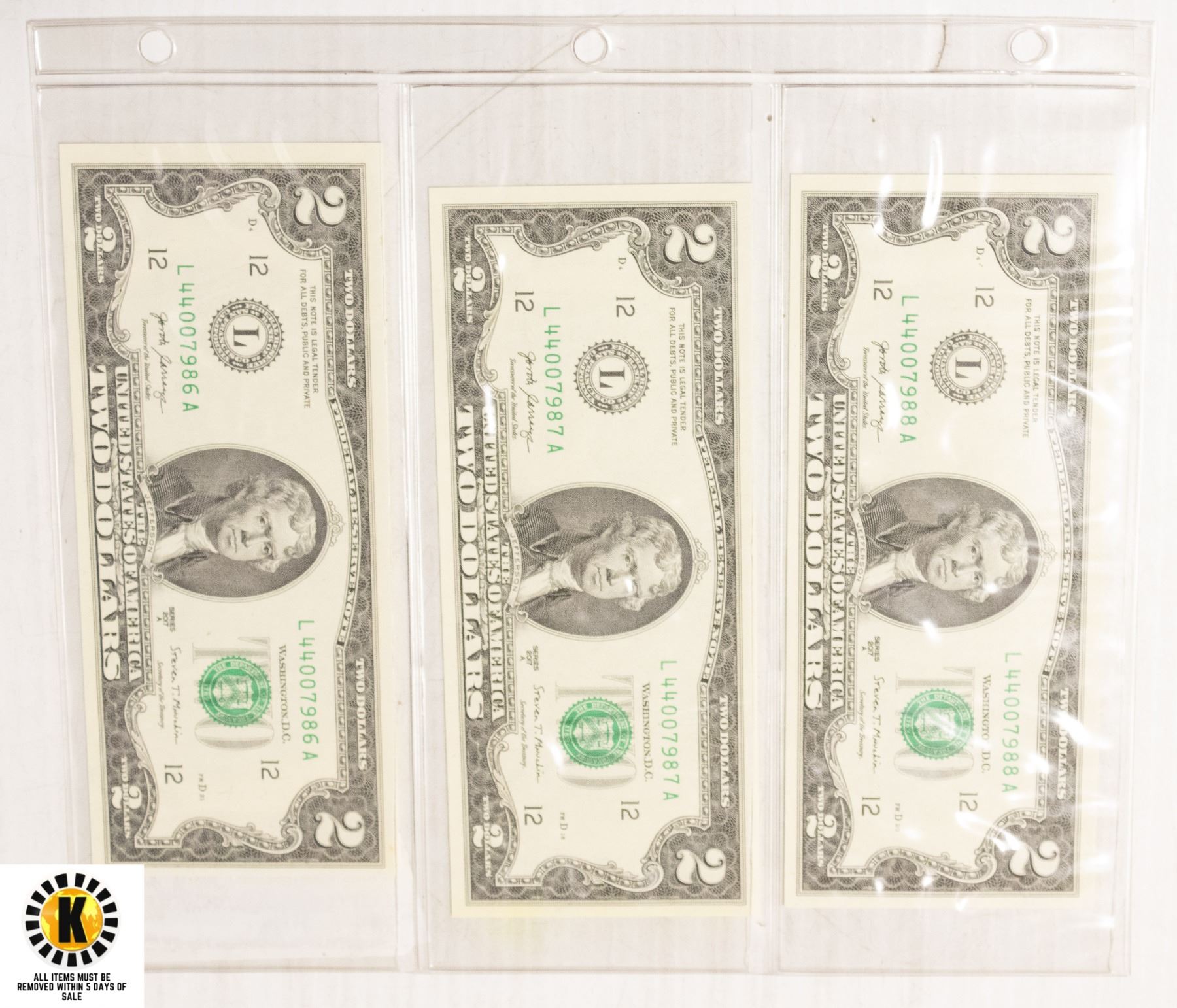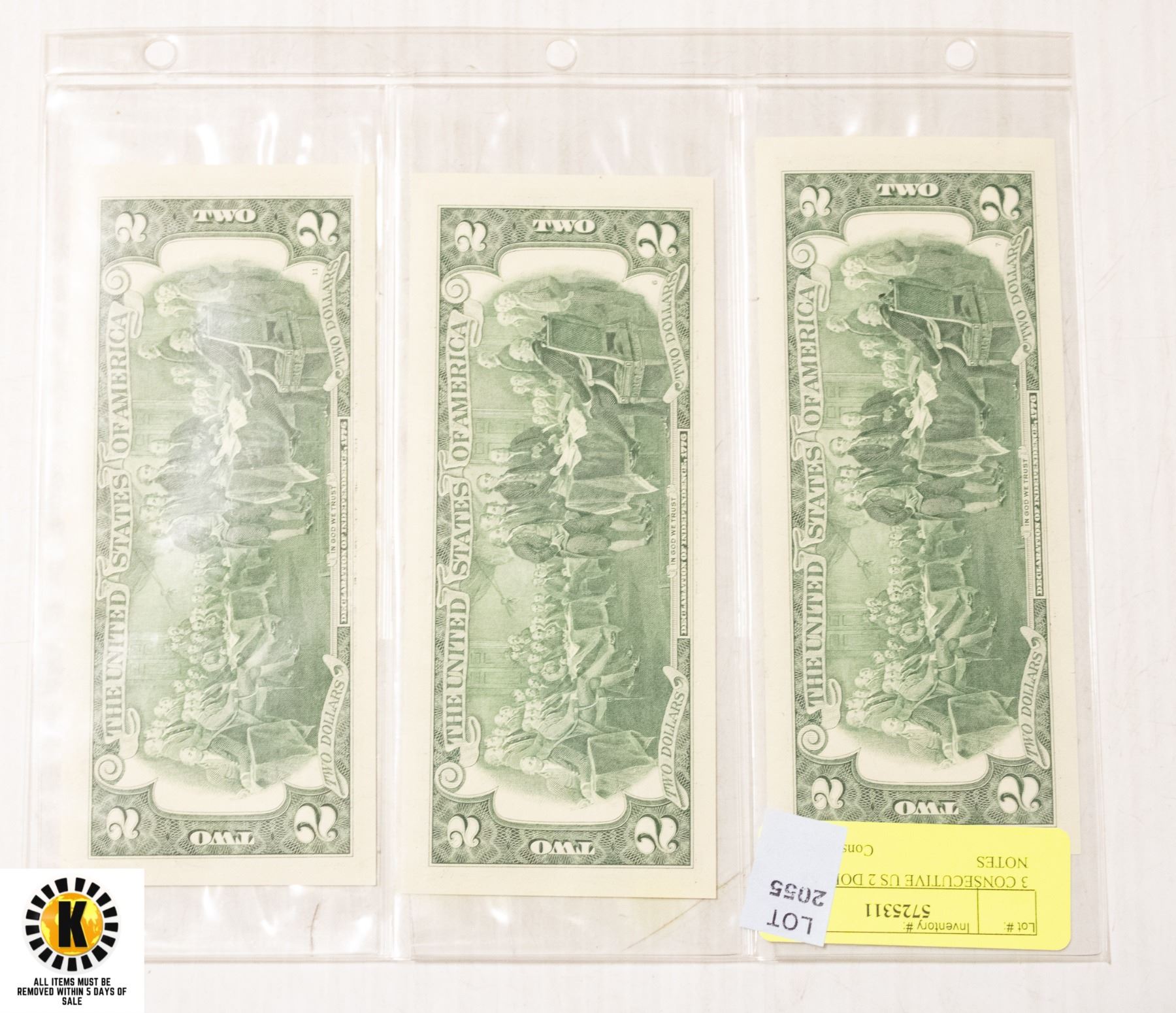 3 CONSECUTIVE US 2 DOLLAR NOTES