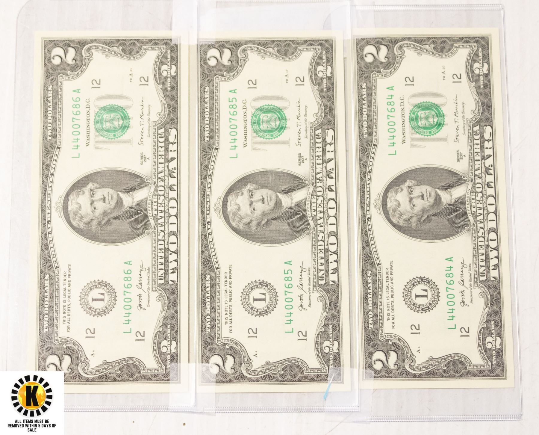 3 CONSECUTIVE US 2 DOLLAR NOTES