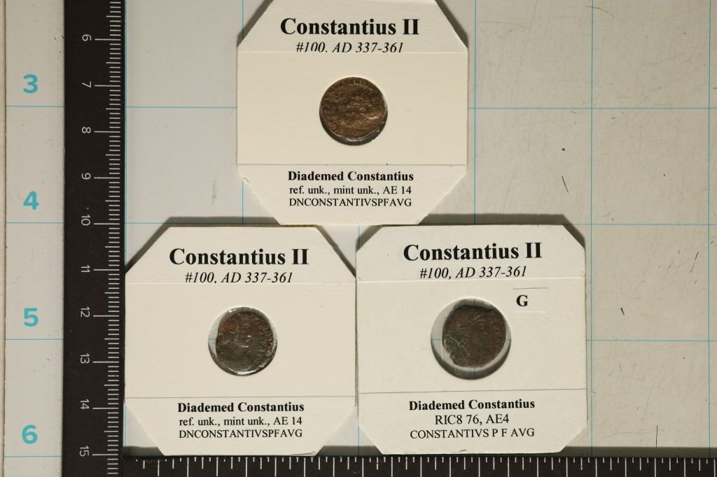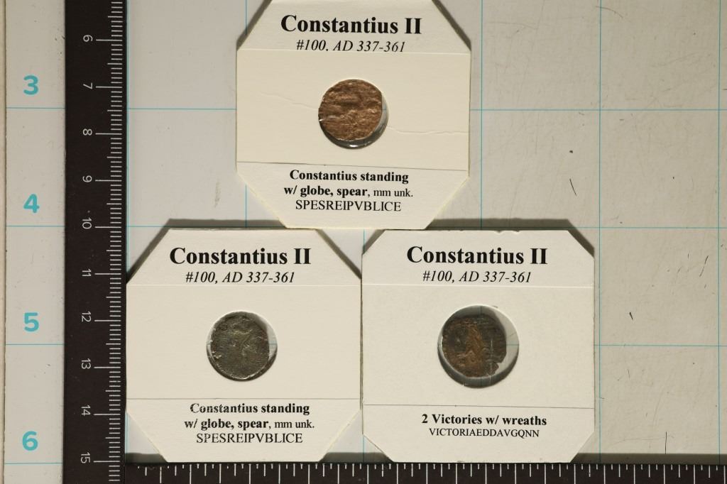 2 VICTORIES WITH WREATHS AND 2-CONSTANTIUS STANDING WITH GLOBE AND SPEAR.