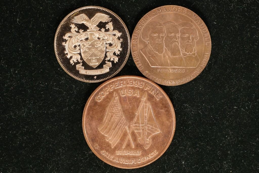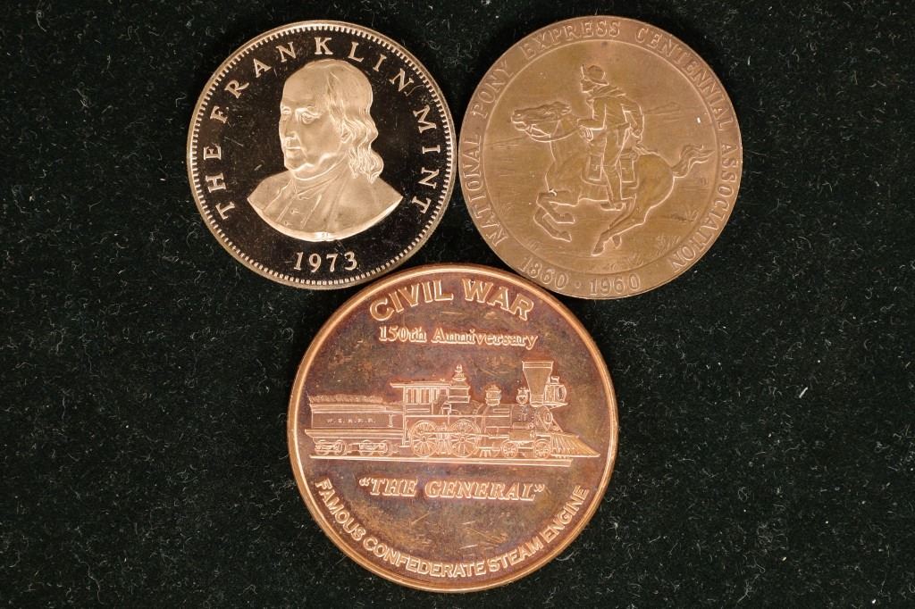 ANNIVERSARY, .6 OZ. PONY EXPRESS CENTENNIAL COMMEMORATIVE AND 1973-.4 OZ. FRANKLIN MINT PF ROUND