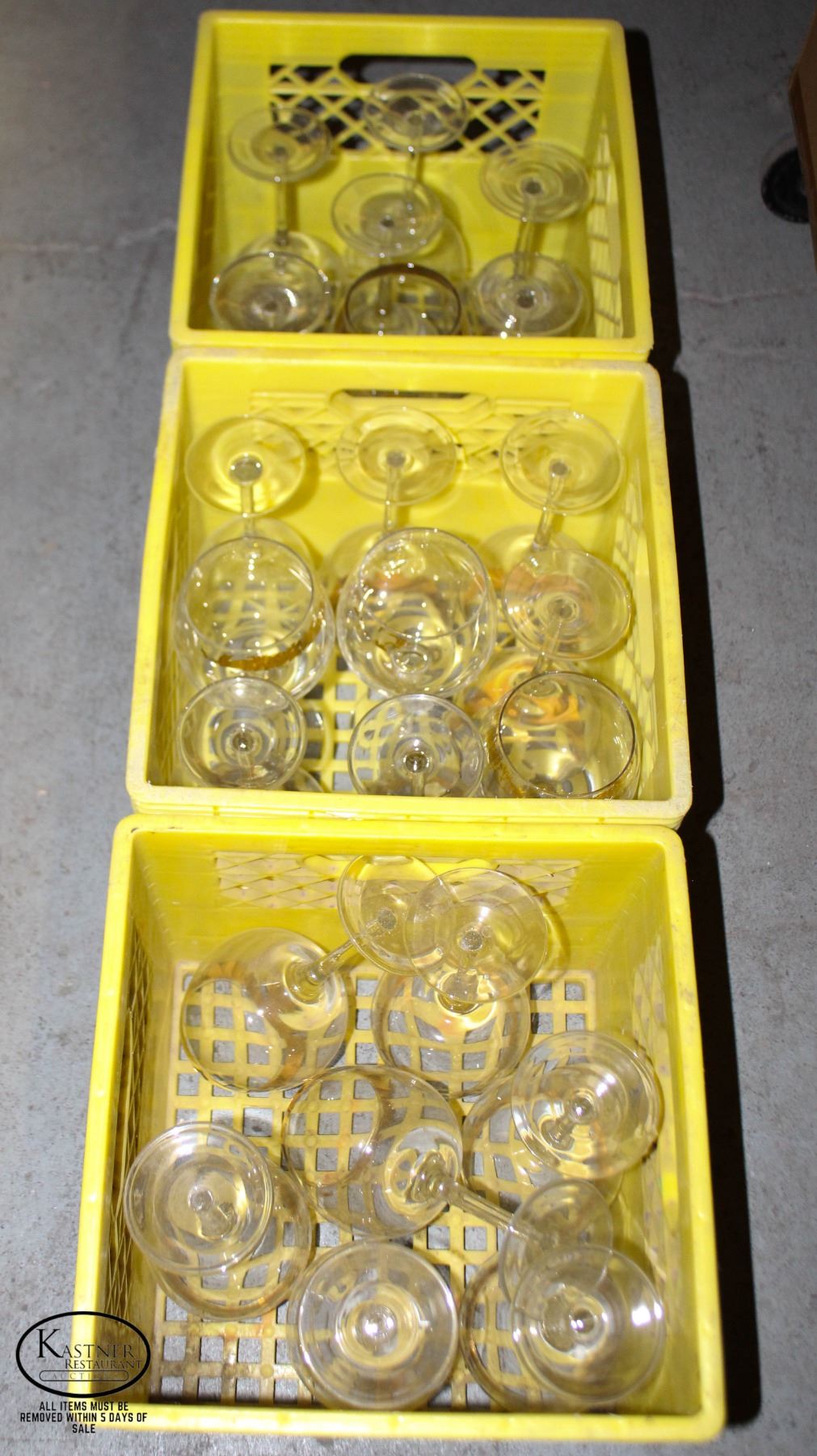 3 CRATES OF GOLD-RIMMED WINE GLASSES