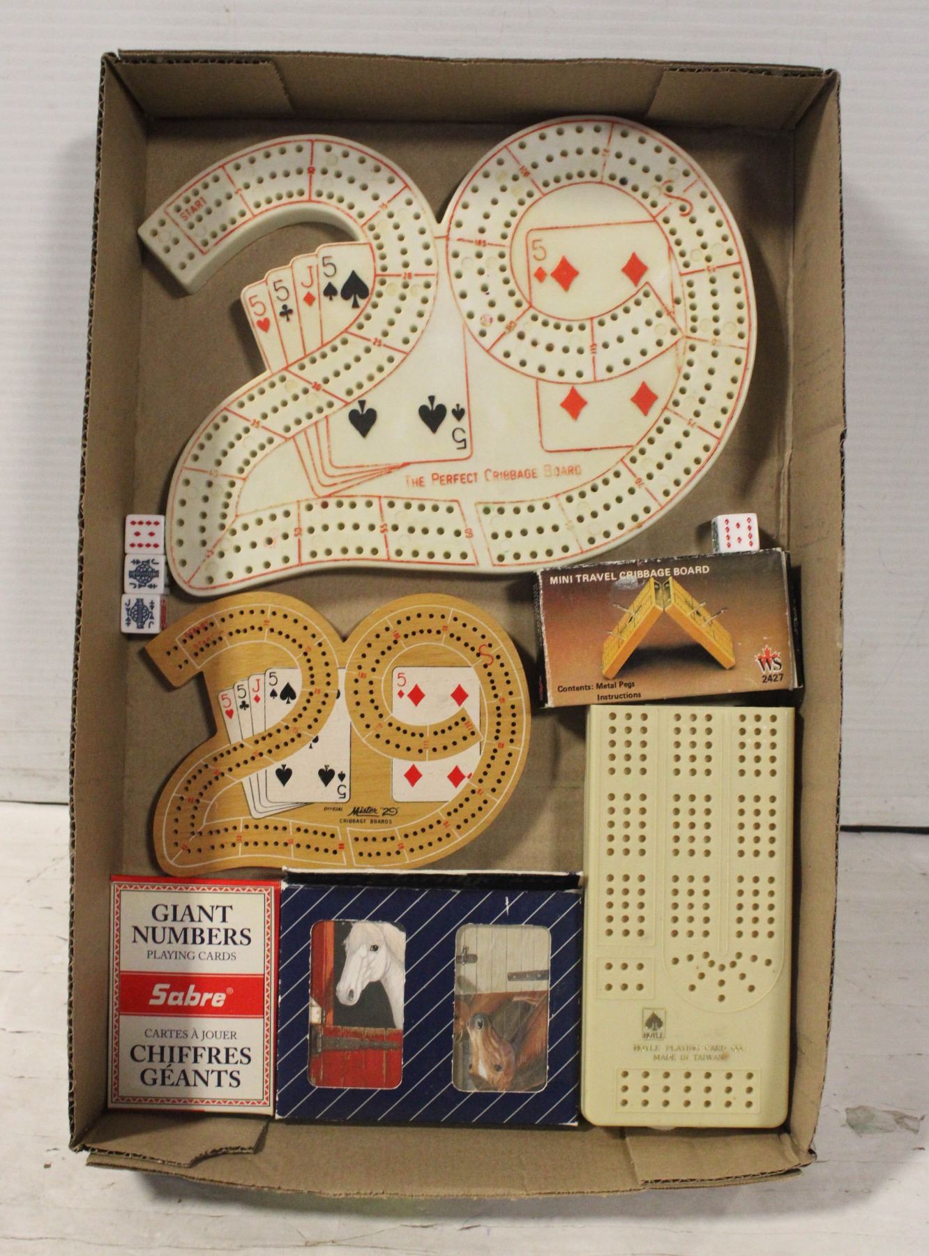 3 CRIBBAGE BOARDS, TRAVEL BOARD