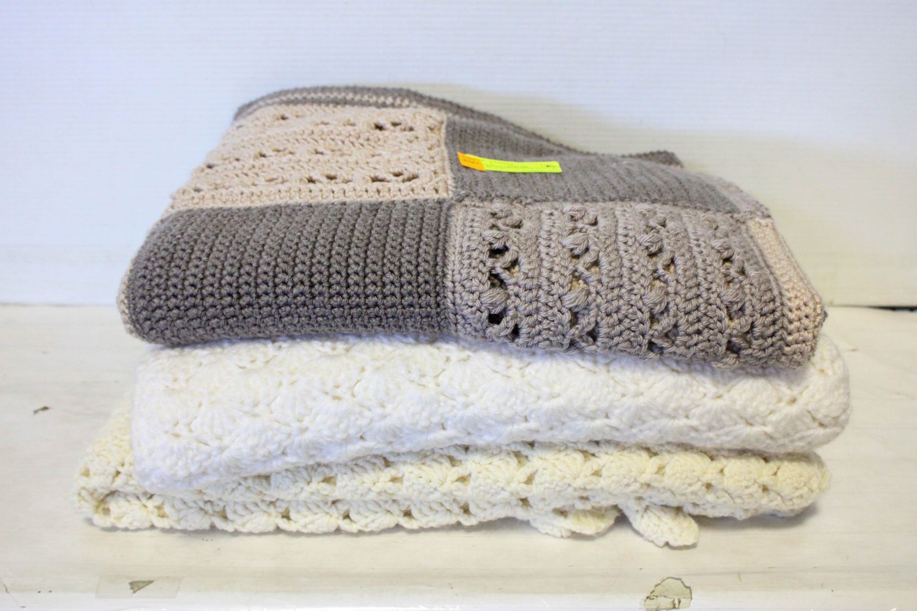 (3) CROCHETED BLANKETS, 41" X 48", 35" X 53",