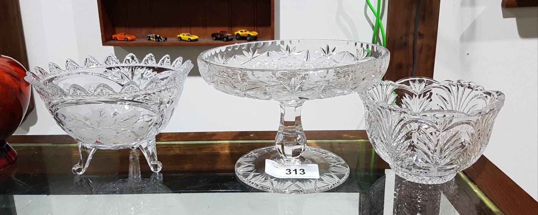 BOWL W/STRAWBERRY MOTIF, COMPOTE & ORNATE BOWL