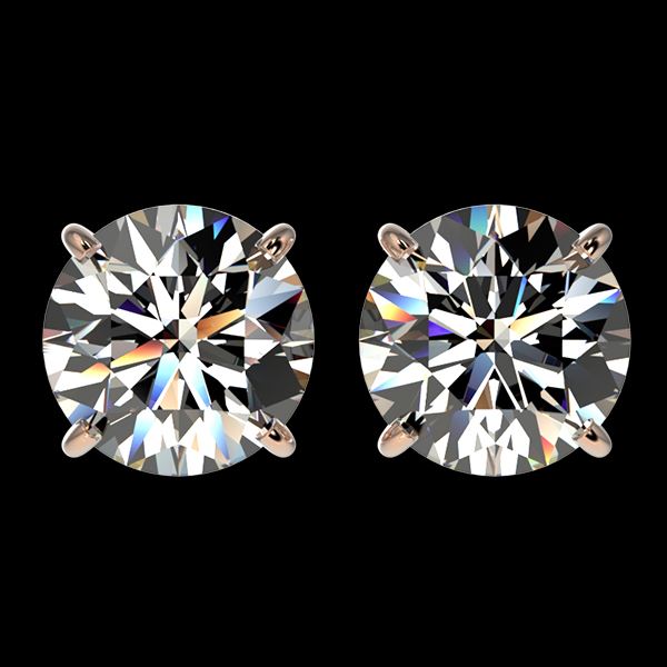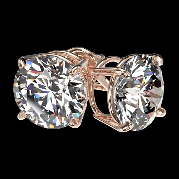 REF-645W2F -33121 ---- 3 CTW Certified H-I Quality Diamond Solitaire Stud Earrings 10K Rose Gold ---- Luxury Designer Brand Earring Appraised at $43,000 Certificate Number US33121  10k Rose gold,  Earring Size is Larger, Earring measuring approx. Uniform, weighing in total approx. 2.5 grams. Made in the USA and is stamped 10k, Main stone 3 carat total weight containing 2 pieces of H-I color with I quality Round shape cut Diamond , Stone #2  carat total weight containing  pieces of  color with quality  shape cut