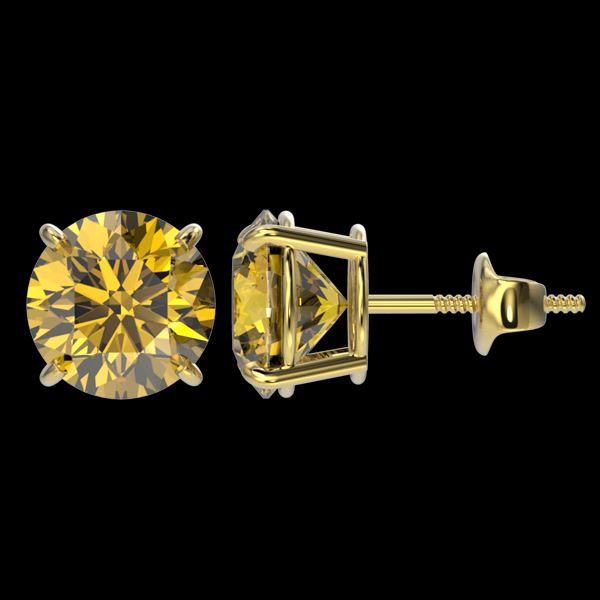 REF-555W2F -33130 ---- 3 CTW Certified Intense Yellow SI Diamond Solitaire Stud Earrings 10K Yellow Gold ---- Luxury Designer Brand Earring Appraised at $40,700 Certificate Number US33130 10k Yellow gold, Earring Size is Larger, Earring measuring approx. Uniform, weighing in total approx. 2.5 grams. Made in the USA and is stamped 10k, Main stone 3 carat total weight containing 2 pieces of Intense Fancy Yellow color with SI quality Round shape cut Diamond , Stone #2 carat total weight containing pieces of color with quality shape cut