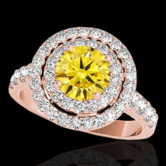 REF-388T2M -34228 ---- 3 CTW Certified Si/I Fancy Intense Yellow Diamond Solitaire Halo Ring 10K Rose Gold ---- Luxury Designer Brand Ring Appraised at $23,500 Certificate Number US34228 10k Rose gold, Ring Size is 7, Ring measuring approx. Uniform, weighing in total approx. 8.7 grams. Made in the USA and is stamped 10k, Main stone 1.55 carat total weight containing 1 pieces of Intense Fancy Yellow color with SI quality Round shape cut Diamond , Stone #2 1.45 carat total weight containing 51 pieces of H-I color with VS/SI quality Round shape cut Diamond