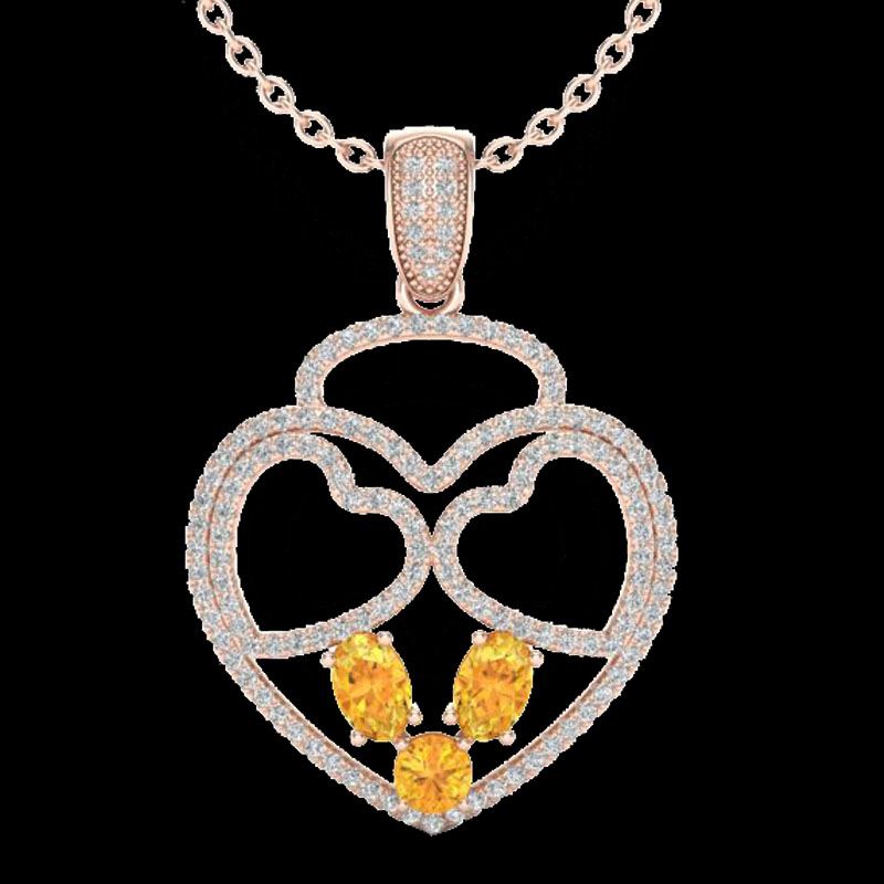 REF-117T8M -22537 ---- 3 CTW Citrine & Micro Pave Designer Inspired Heart Necklace 14K Rose Gold ---- Luxury Designer Brand Necklace Appraised at $8,400 Certificate Number US22537  14k Rose gold,  Necklace Size is 16 Inches, Necklace measuring approx. 1 1/2" x 1" , weighing in total approx. 7.3 grams. Made in the USA and is stamped 14k, Main stone 1.5 carat total weight containing 2 pieces of Translucent Yellow color with AAA quality Oval shape cut Citrine , Stone #2 0.3 carat total weight containing 1 pieces of Translucent Brownish Yellow color with  AAA quality Round shape cut Citrine , Stone #3 1.2 carat total weight containing 160 pieces of G-H color with VS/SI quality  Round shape cut Diamond